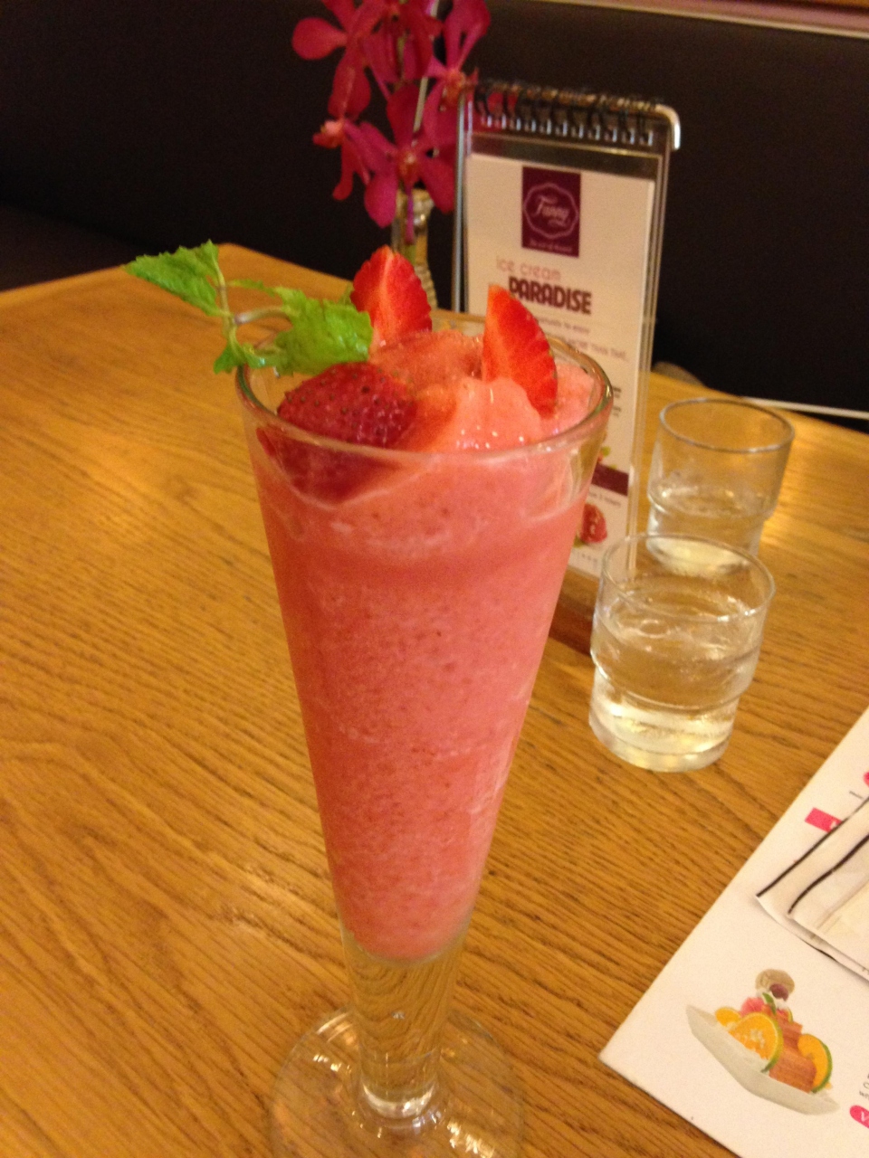 ベンタイ市場を見に行った帰りに暑い中迷い店にやっと着ました、宿泊先にもよりますが地図があっても思っていたより街が小さく通り越してしまったりで結構、歩きました。メニューはシクロ形のアイスだけでなく他にもデコレーションされたパフェ系が多かったです。落ち着いた店内で暑さが吹っ飛びます。