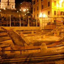スペイン階段の真ん前にある噴水です。ベルニーニの父親作のようです。行った時はちょうど修復作業をしている最中で、水は全て抜かれていて周りも囲われていました。それでも周りにはそれなりの数の観光客がいたので、やはり有名な噴水のようですね。
