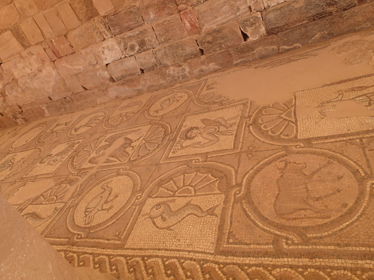 ペトラ遺跡の敷地内で、このスポットだけモザイク壁画が見られます。モザイク壁画はマバダでも見られますがペトラ遺跡のものはまた雰囲気が違います。