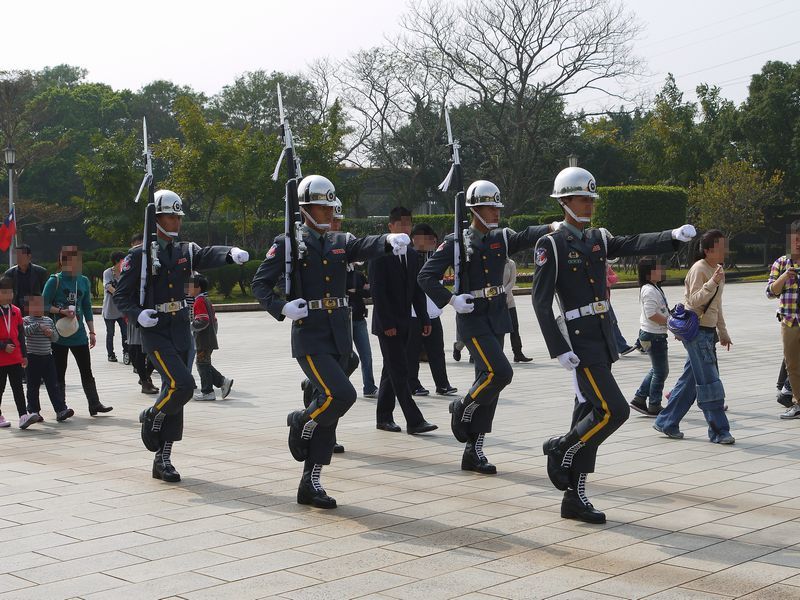 毎時行われる衛兵の交代式で、大門牌楼と大殿の前にいる衛兵が交代をします。同じような交代式は中正紀念堂と国父紀念館でも見ることができます。