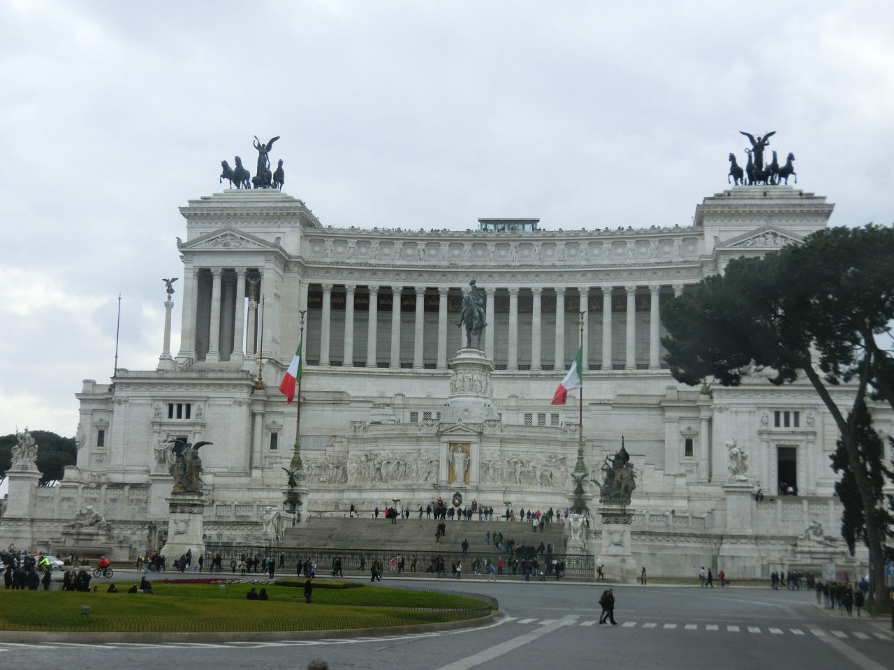 この記念堂はイタリアを統一し初代国王となったヴィットリオ・エマヌエーレ2世の偉業を記念して建てられた建物です。古代ローマの遺跡が多いローマ市の建物のなかでは新しい建物です。しかもフォーリ・インペリアーリやフォロ・ロマーノなど古代遺跡が広く散らばっているなかでは、この建物は異質に感じました。