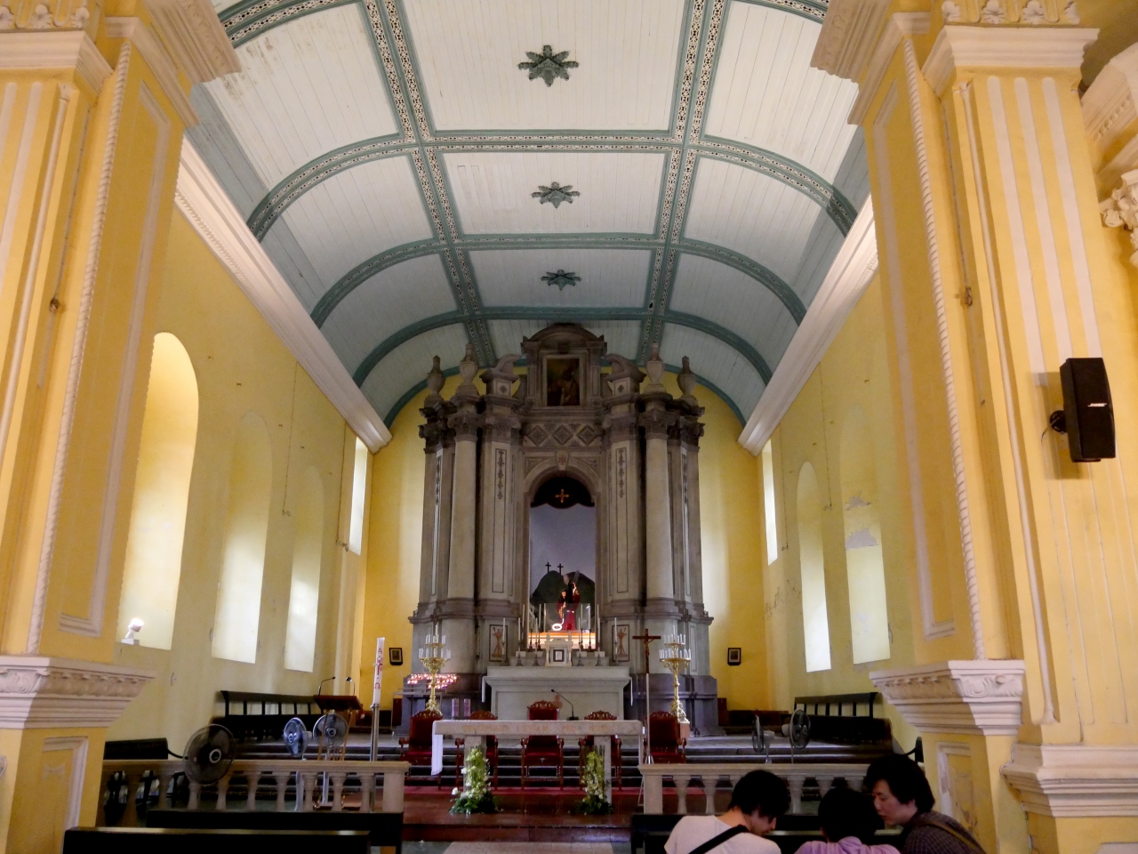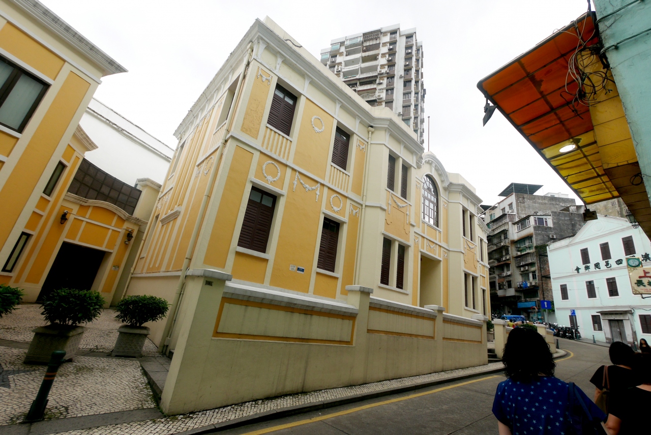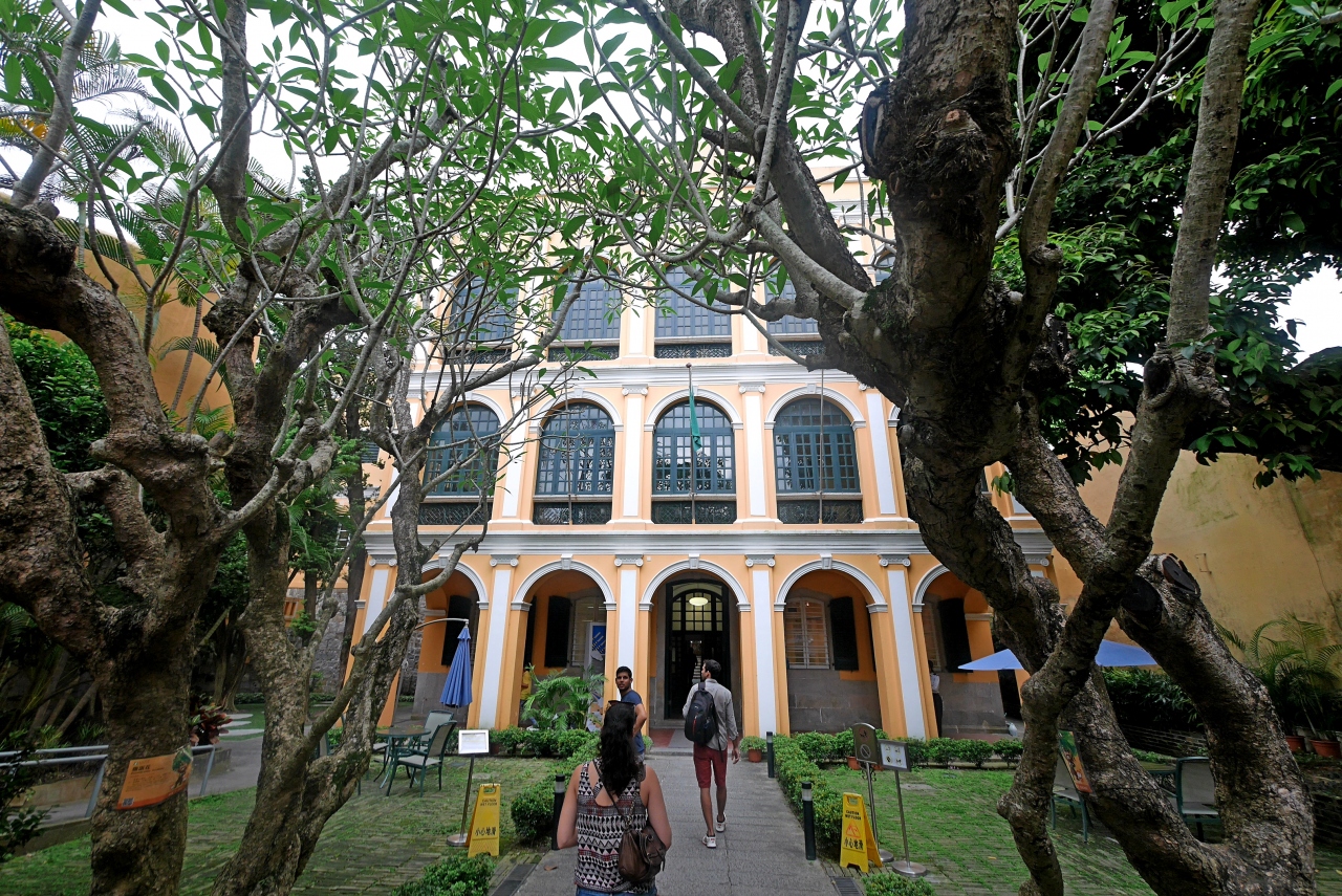 聖オーガスチン教会,ロバート・ホー・トン図書館,ドン・ペドロ5世劇場.いずれも世界遺産.このあたりはすごくいい雰囲気.私はマカオの中でここが一番ヨーロッパテイストがある場所と思う.聖オーガスチン教会のファザードも内陣も明るい感じ.