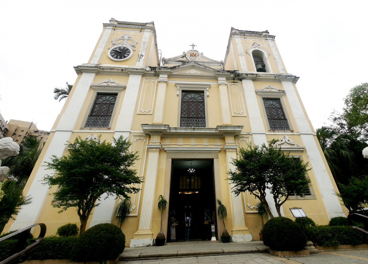 聖オーガスチン広場からも中に入れるが,南側の正門からのファザードが美しい教会.天使が守るようだ.なかのステンドグラスも美しい.1558年から1600年にかけてイエズス会によって建設されたカトリック教会で.マカオの教会の中では最も古いもののひとつ.聖ローレンスとは、3世紀にローマ皇帝ヴァレリアヌスの迫害を受けて殉教した聖人.東方的な香りもするよい教会だ