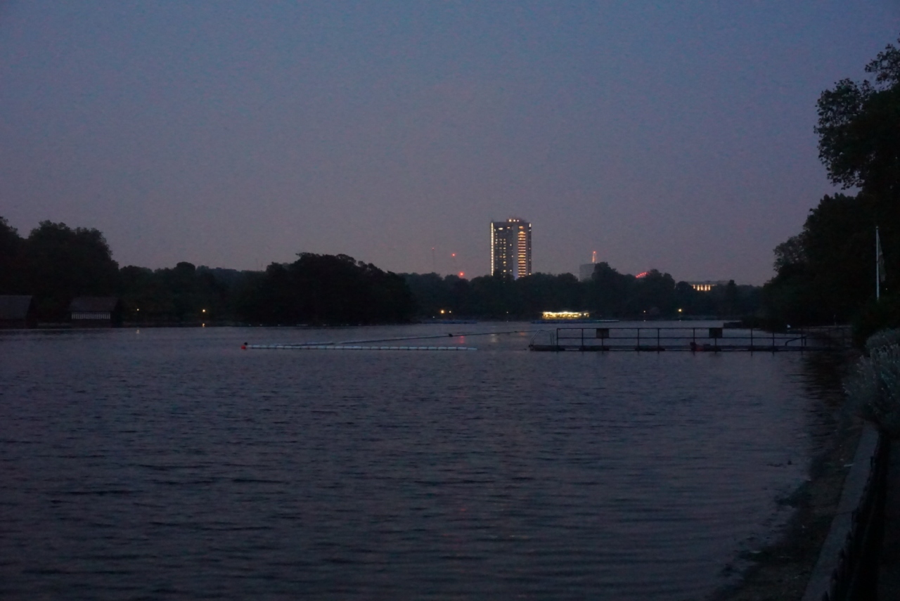 小説「ジキルとハイド」のハイド氏の終焉の地、こんな時間に訪れると心霊スポットのようです。湖を取り囲んだ広大な庭園ですが、幕末期に開催された第一回万博のさい建てられた鉄とガラスによる巨大温室(植物園)水晶宮〈クリスタル・パレス〉があった場所なんです、(東京デズニーランドに似た建物があります)
