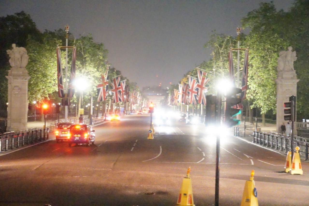 仰々しい限りですが、英訳すると“木陰のある散歩道”。『The』がつくと英王室儀式用道路になるそうです。宮殿とトラファルガー広場を結ぶ900m程の道で常に国旗がひらめいている。4年前、P・マッカートニーとトム・ジョーンズ達による女王即位60年のコンサート場所を確かめたかったのです。