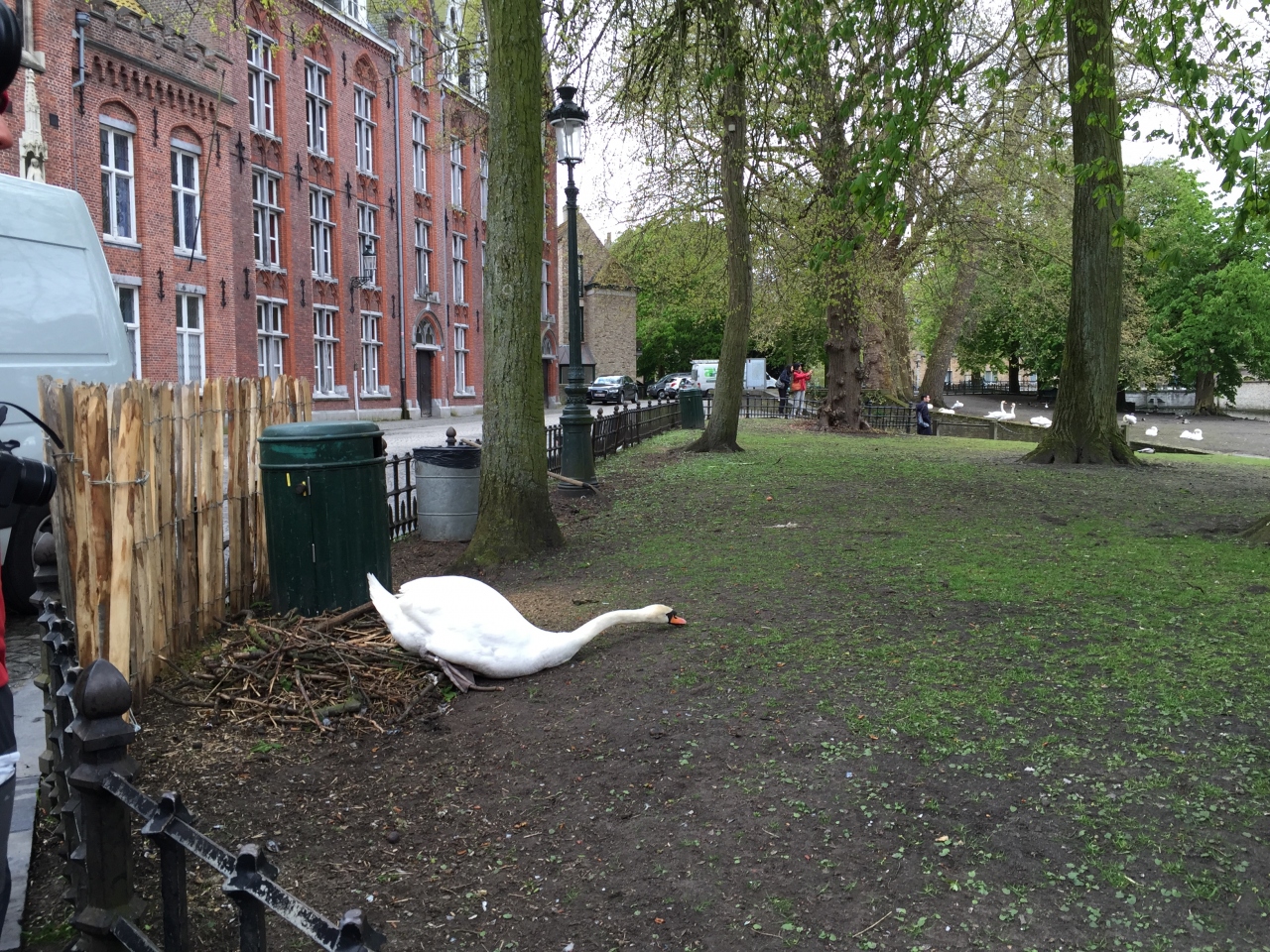 とても人に慣れているのか、道路のすぐそばに巣を作っている白鳥がいてびっくりしました。