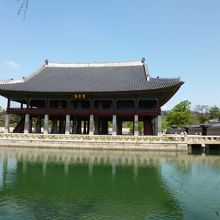 慶会楼の前には池があり、池との対比がとても美しく絵になる光景です。