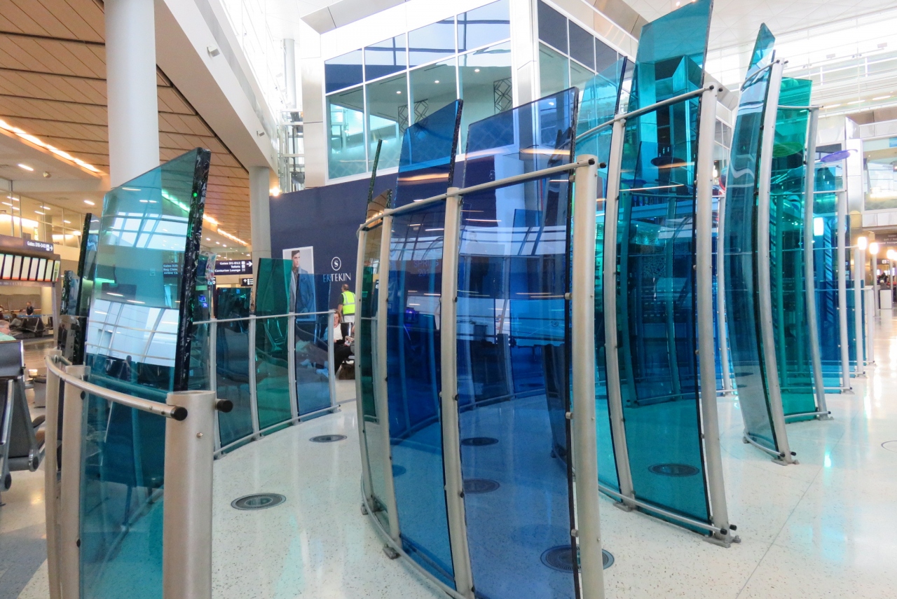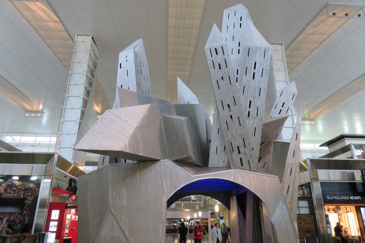 同じターミナル内での乗り継ぎだったのでラクに考えてたんですが、入国自動審査の機械でバッテンが出て有人カウンターに再度並ばされるし、手荷物検査だけで30分以上待たされるし、結局ゲートに行けたのはギリギリでした。出発ゲートにはお店もおもしろい現代アートもあるのでゆっくり見たかったのに...