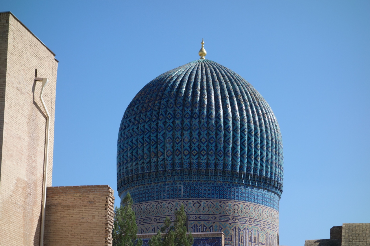 レギスタン通りから、南に入っていくと、まずルハバッド廟があり、その先にはもうグリ・アミール廟の青いドームが見えています。