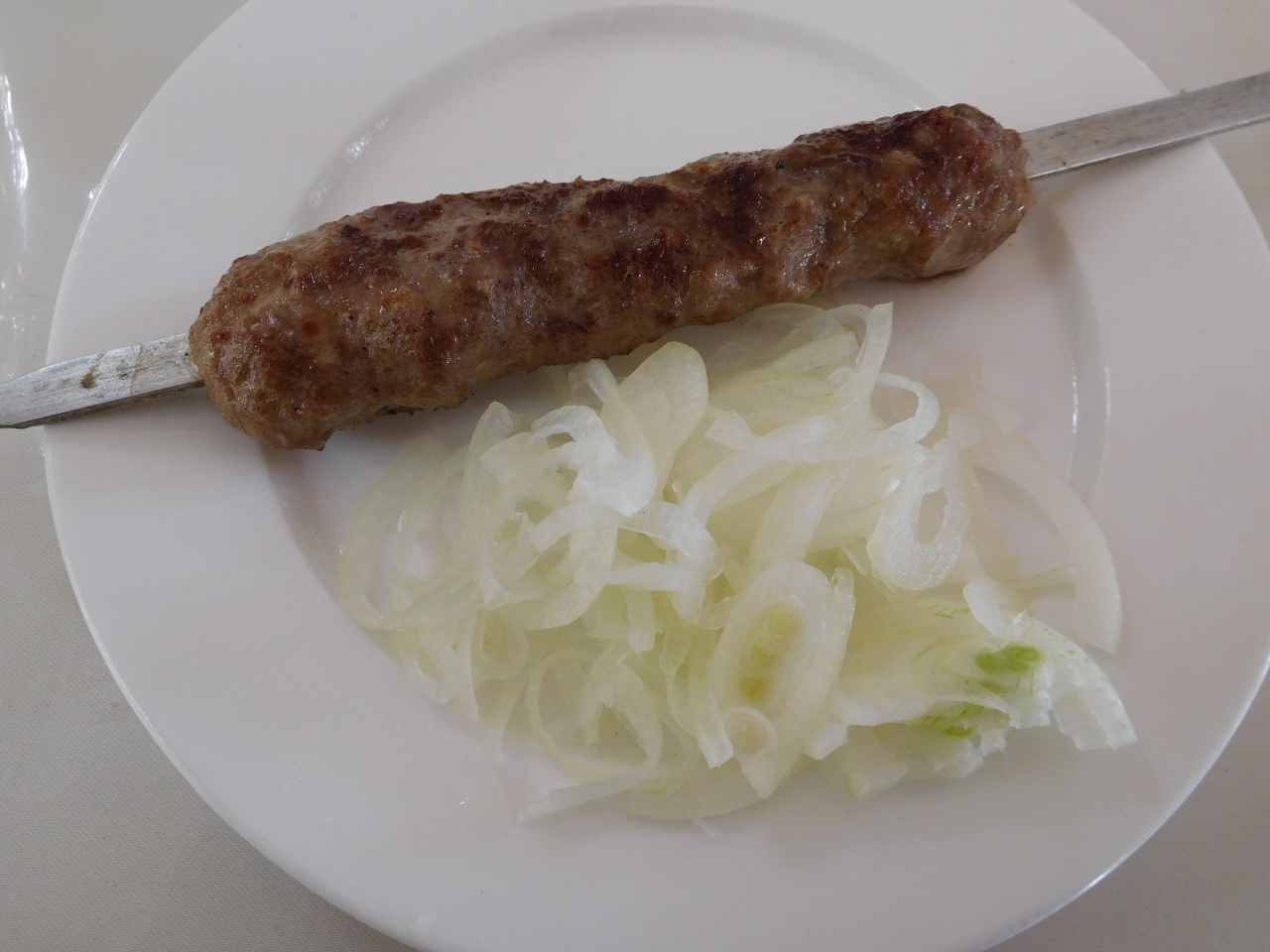 ランチにしては遅い時間(14時近く)に行きましたが、まだまだお客さんがたくさんいました。シャシリクを注文。1本でもOKで、新鮮なタマネギにのったおいしいシャシリクが出ました。