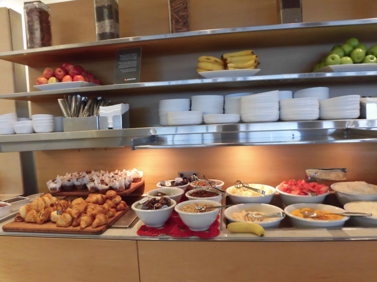 朝早かったので朝食を食べようとカンタスラウンジに行きました。広いラウンジでしたが、料理の近くに座ったので窓からの眺望はイマイチでした。