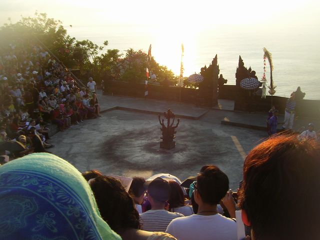 夕陽を浴びながらケチャを鑑賞という事で、バリ島に来たなぁ、と実感できます。人気があるのだと思いますが、ケチャは相当混み合いますので、夕陽も見たい方は早目に席を確保されることをお勧めします。(ツアーであれば、ガイドさんが案内してくれると思いますが)