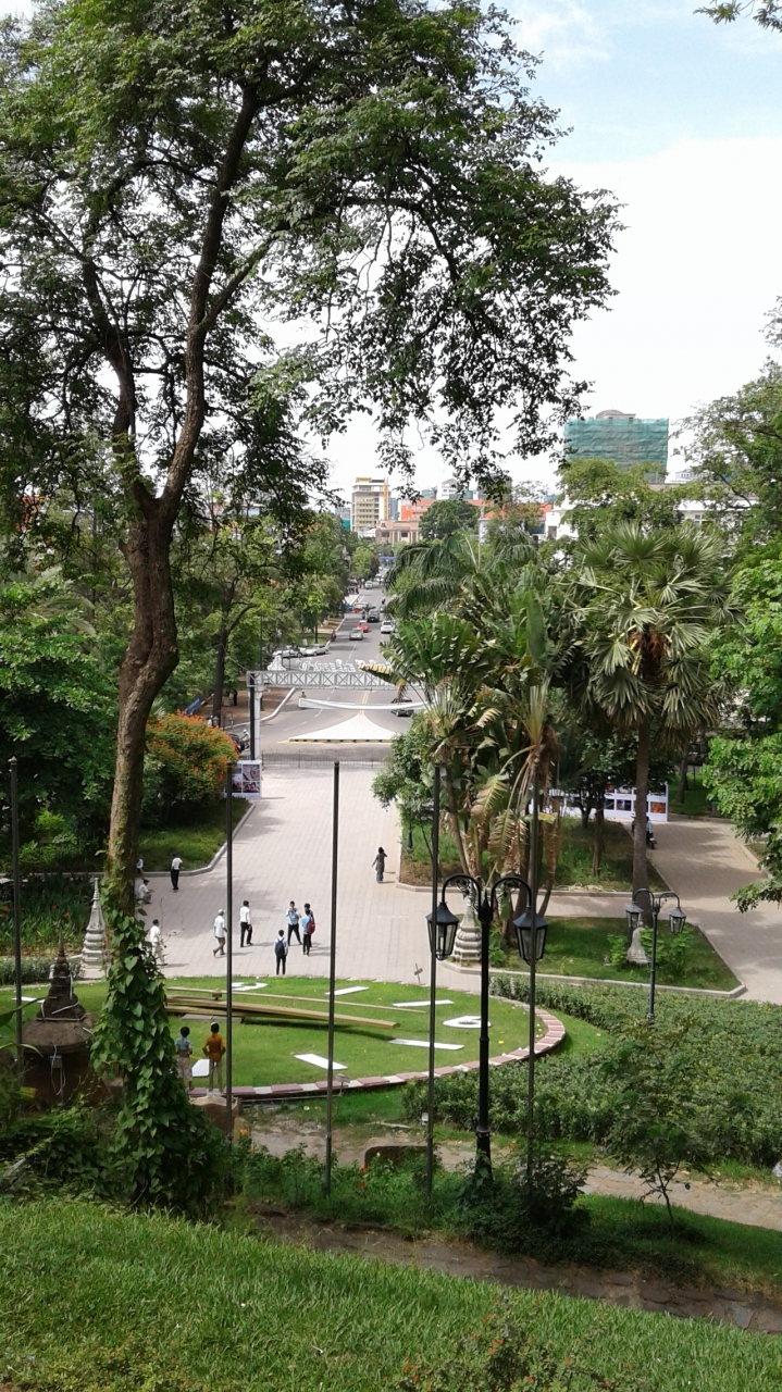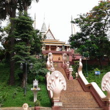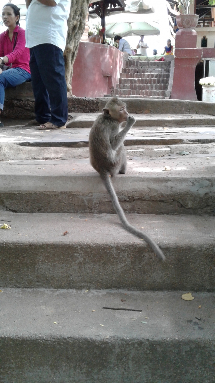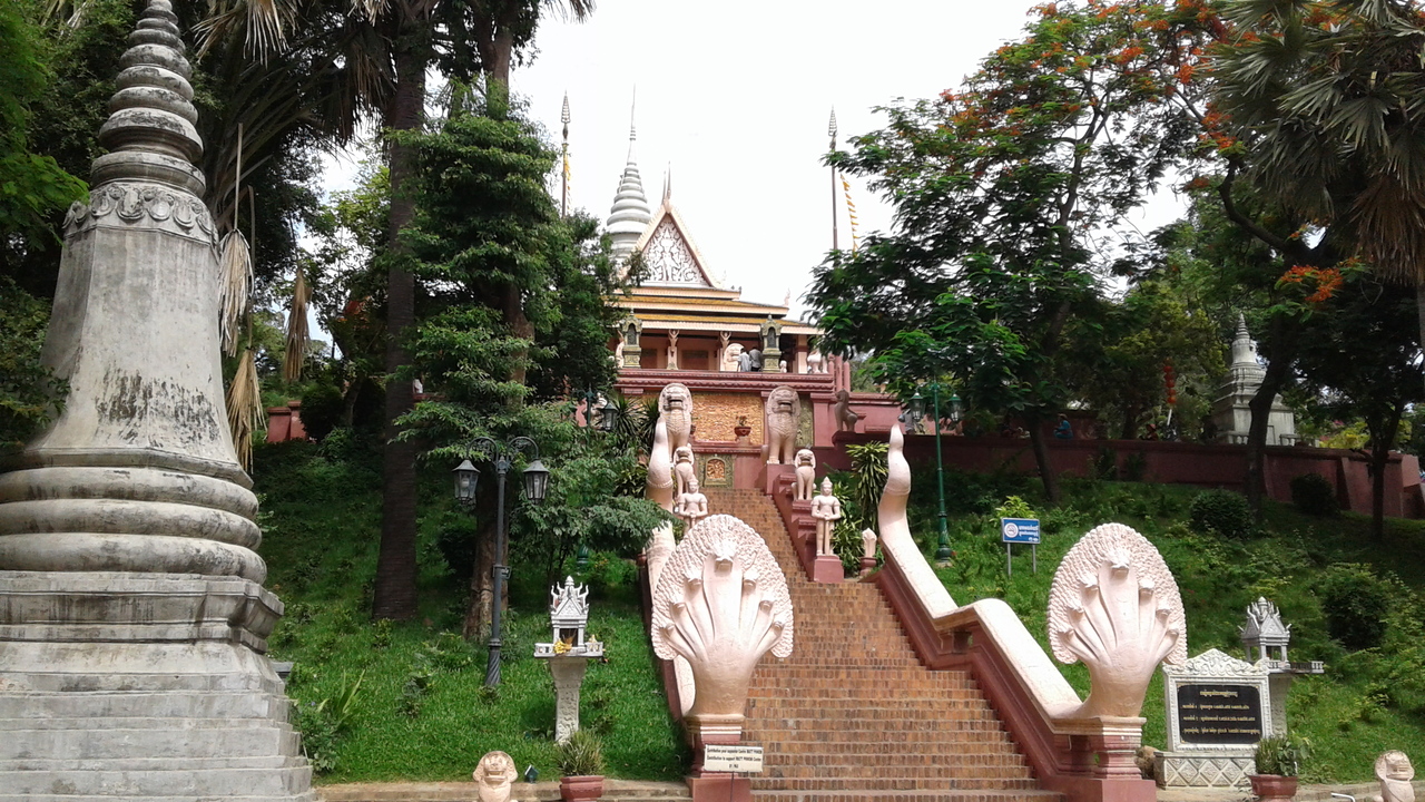 プノンペンのワットプノンは観光スポットとしては、プノンペン市内の北部に位置します。ナイトマーケットからは徒歩約15分です。寺院全体が公園のようになっていて、市民の憩いの場所になっています。野生の尾長ザルが観光客に餌をねだったりして癒やされます。