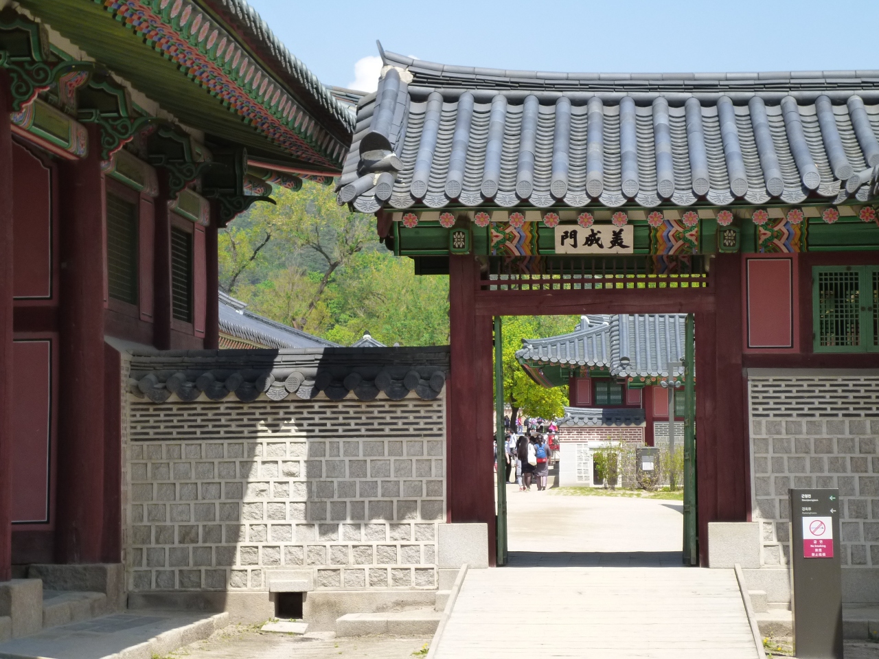 ソウルの人気観光スポット「景福宮」の敷地には様々な建築物があり、大小数多くの門も存在します。「美成門」は、数ある門の中でも最も小ぶりなサイズで、通用口的な役割だったのでしょうか。門越しに見える景色がなかなか印象に残りました。