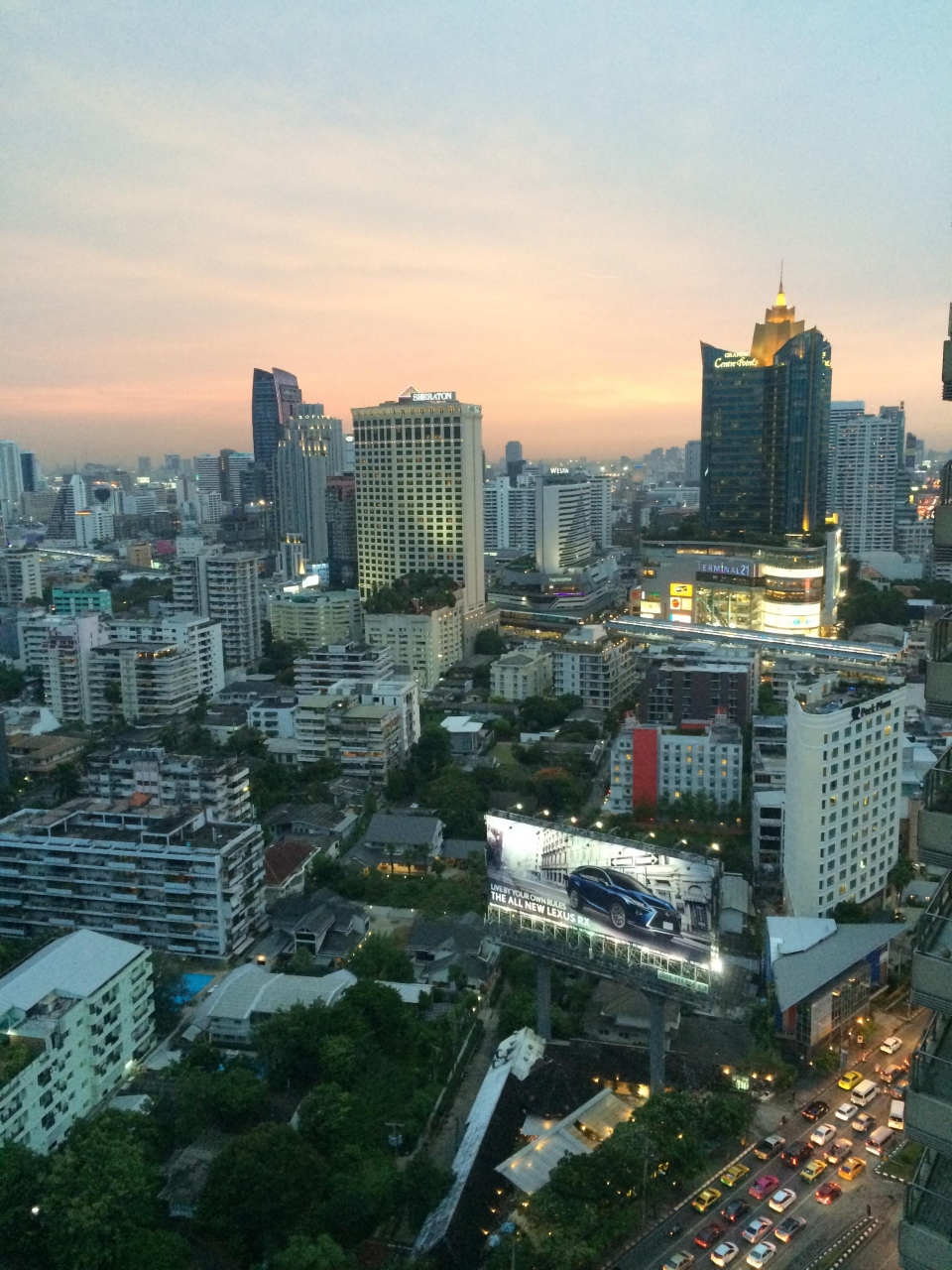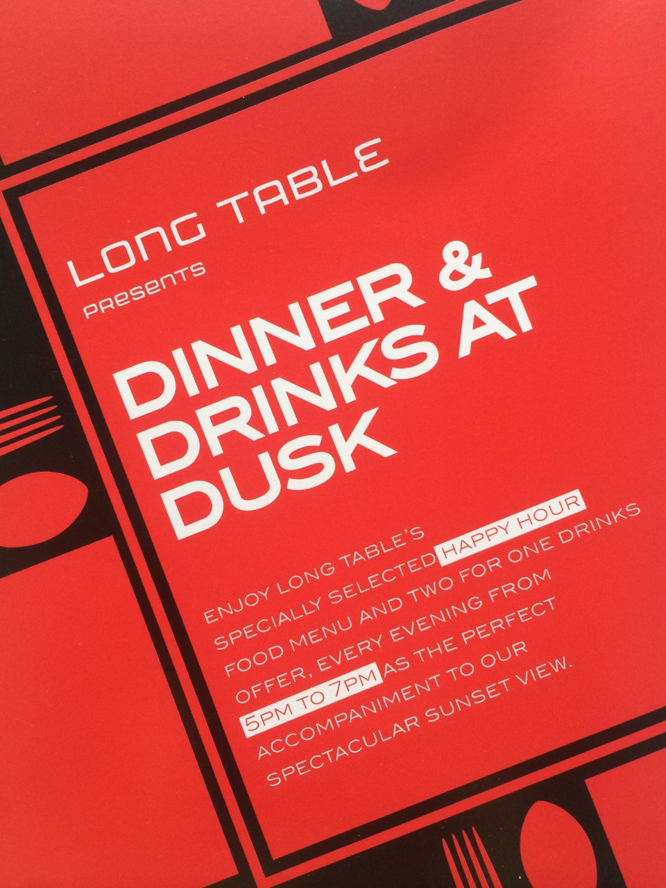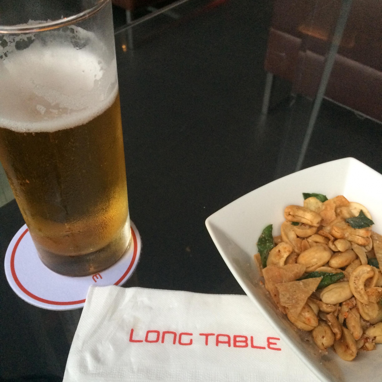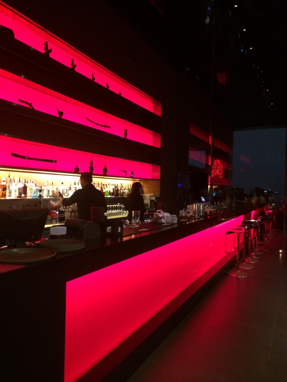 週末も有効なPM5~PM7まではハッピーアワー“Buy 1 get 1 free”1杯分の料金で2杯飲めます!おつまみも3品チョイスで399THB++メニューがありお手頃価格です。アソーク駅からも徒歩で行けるルーフトップバー意外と穴場、要予約。店内は赤い長ーいカウンターがロングテーブルなのかしら…テラス席からはバンコクの夜景も堪能できます。