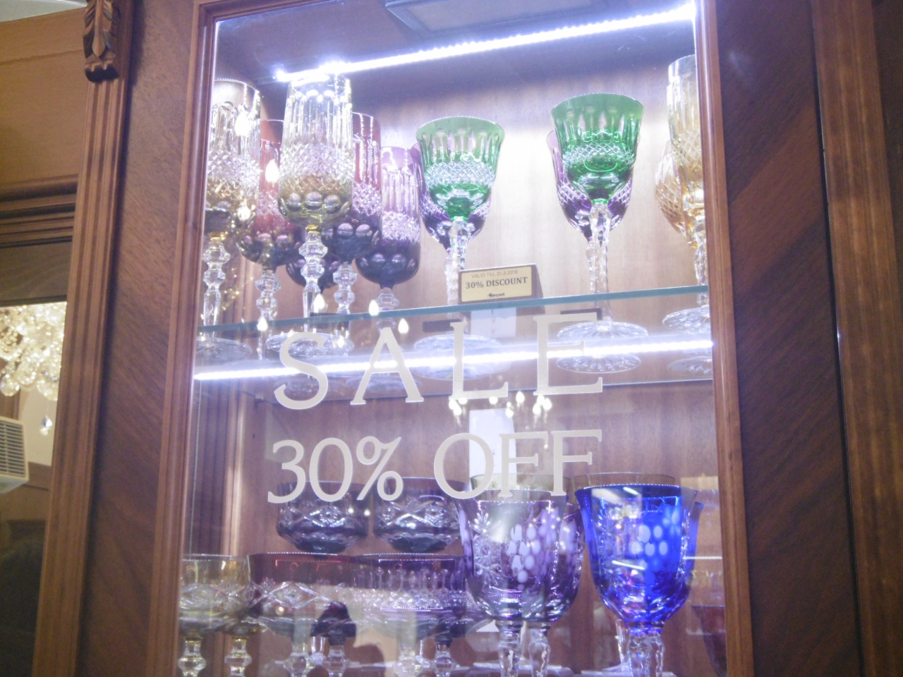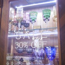 とても広いお店で、食器や花瓶、シャンデリア、アクセサリーなど、光り輝く美しいクリスタルがたくさんありました。