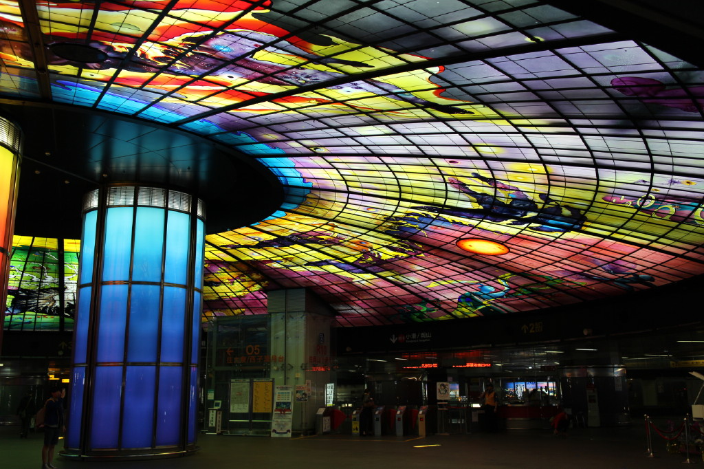 ホテルが美麗島から歩ける距離だったので到着早々美麗島のステンドグラスを見ることができました。ここはMRTの橘線と紅線の乗換駅なのでよく通りますが、ラッシュ時を除けば混みあうこともほとんどないので写真をゆっくりと撮ることができます。