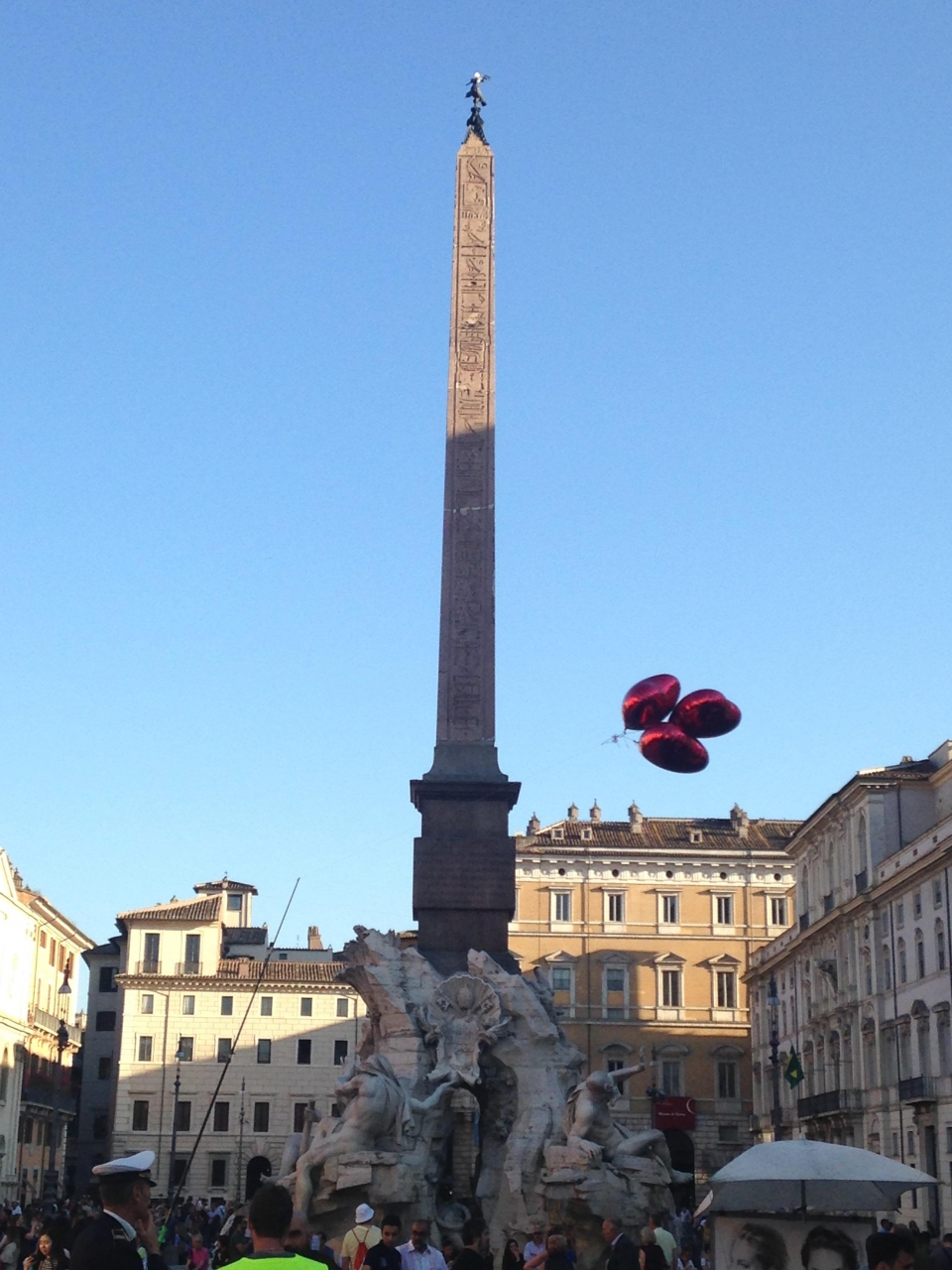 ナボーナ広場の中央にある噴水でオベリスクがのっているので分かりやすい。オベリスクの下にはベルニーニの考えた四大河(ナイル・ガンジス・ドナウ・ラブラダ川)を示しており、キリスト教が世界中に布教されていることを意味している。
