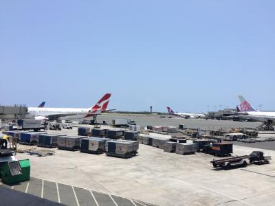 ハワイの空港らしく通路など窓は少なく開放感に溢れています。