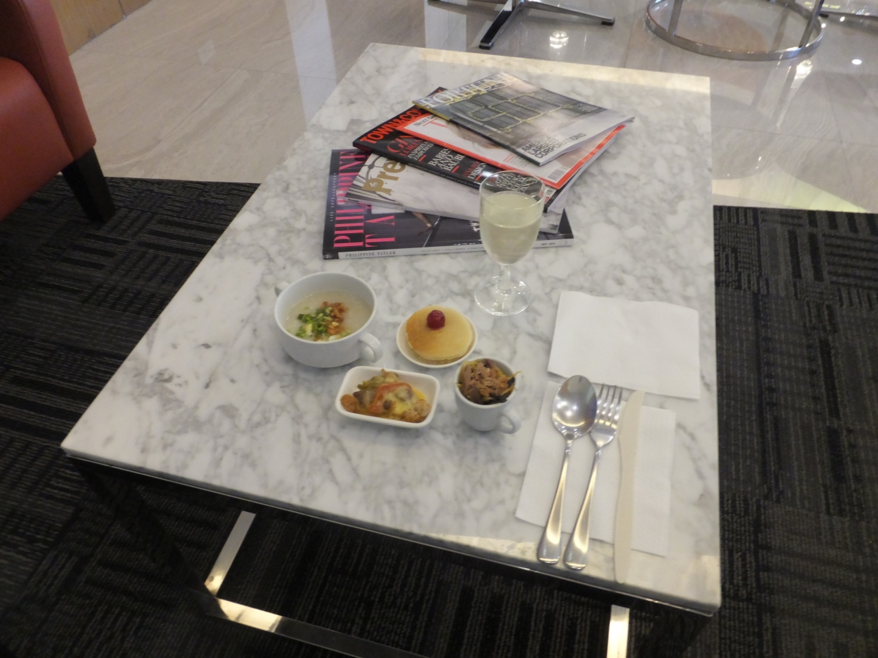 ラウンジ自体はこじんまりとしているものの、ソファ席・テーブル席・カウンター席があり、目的や気分に応じて使い分けられるのが嬉しい。カウンター席からはフィリピン航空を始めとした様々な飛行機の眺めを楽しむことが出来ます。