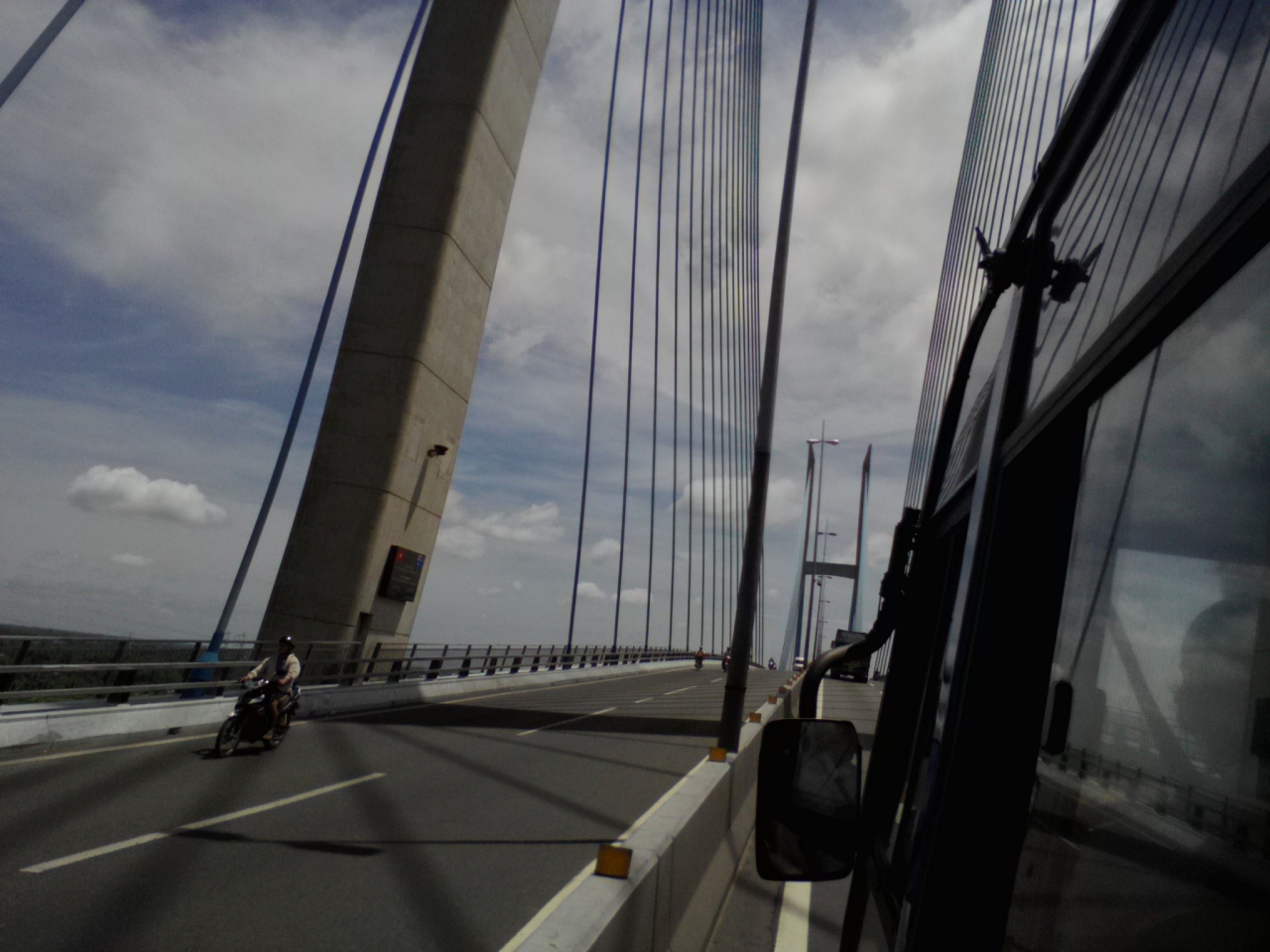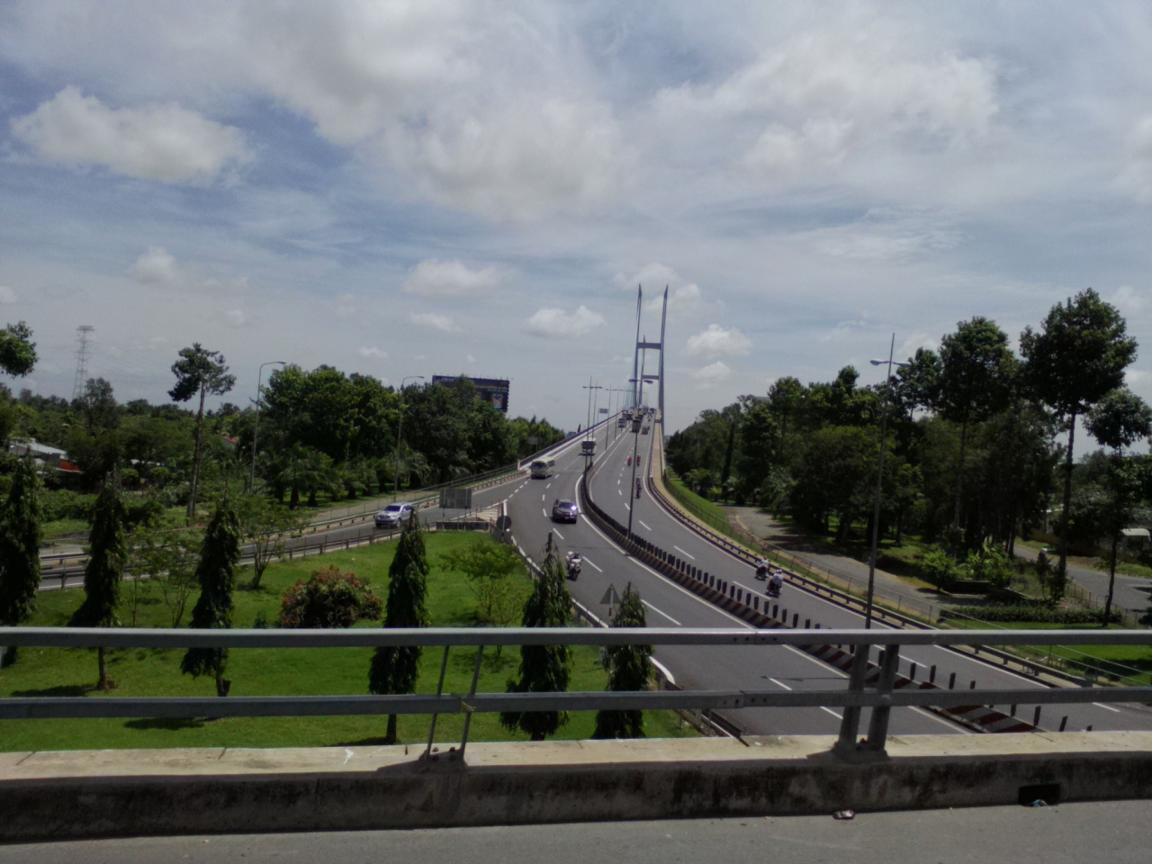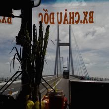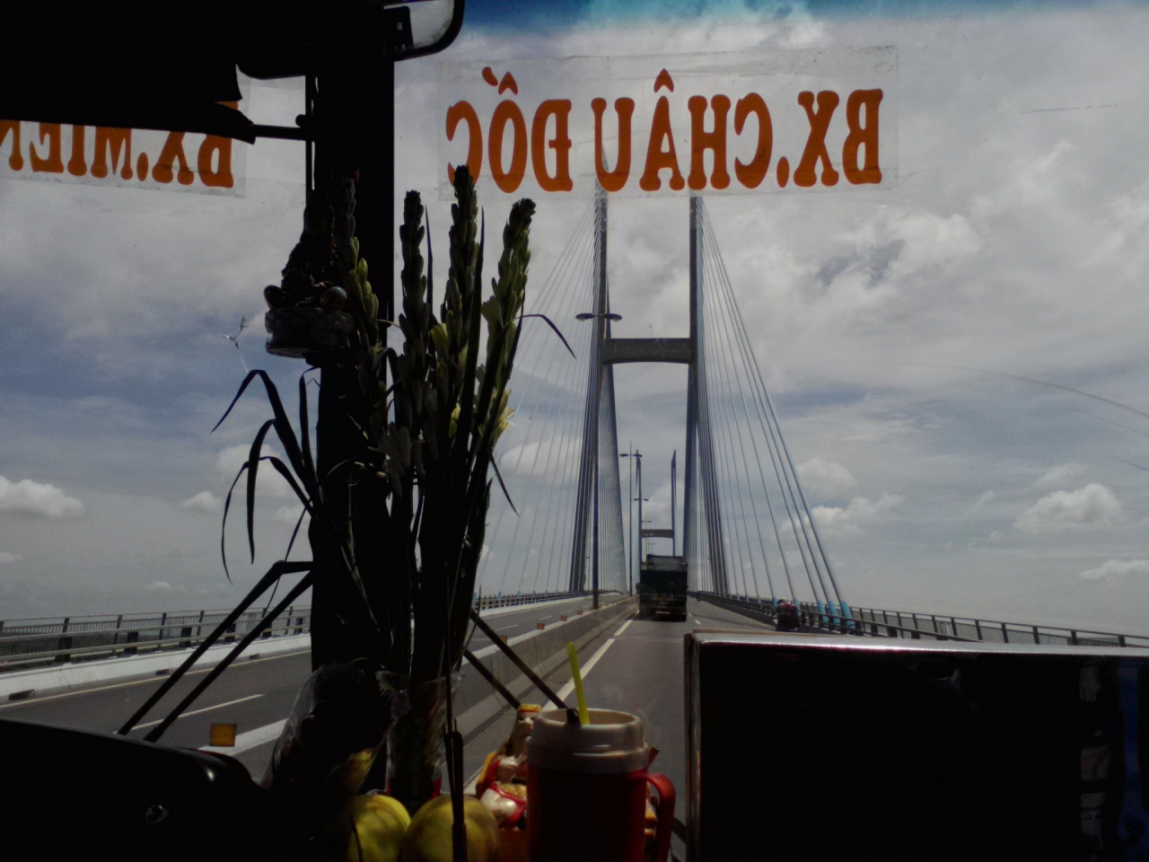 チャウドックからミトーへ移動する際にバスで通過しました。巨大で美しいメコン側にかかる斜張橋(塔から斜めに張ったケーブルで橋を吊る吊り橋の一種)です。ベトナムとオーストラリア両政府の合同事業として開発され2000年に完成しました。