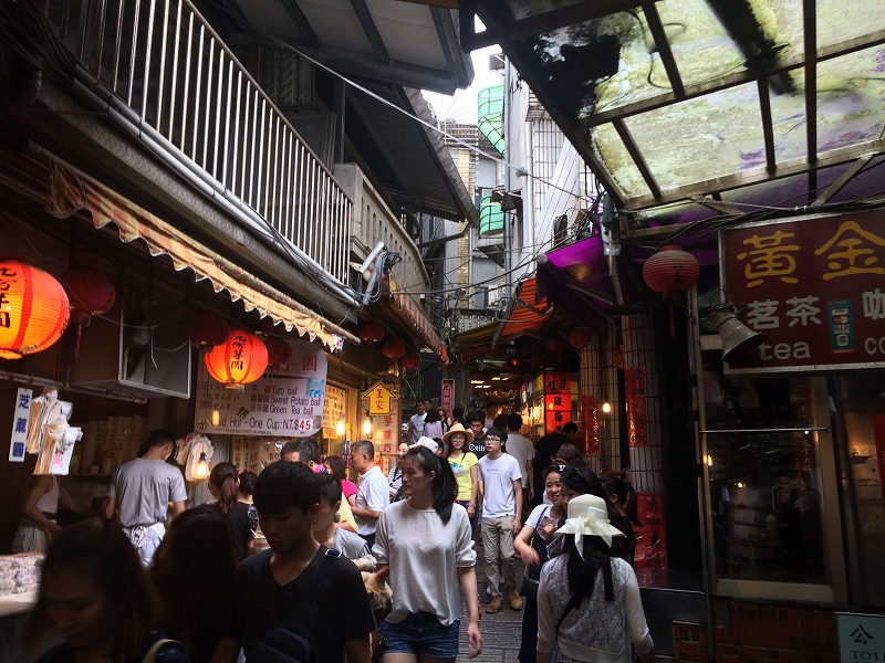 噂には聞いていましたが、九分の街は道が狭くて両側にお店がひしめきあっているので、混雑する夕暮れ時は進むのも大変な状態でした。