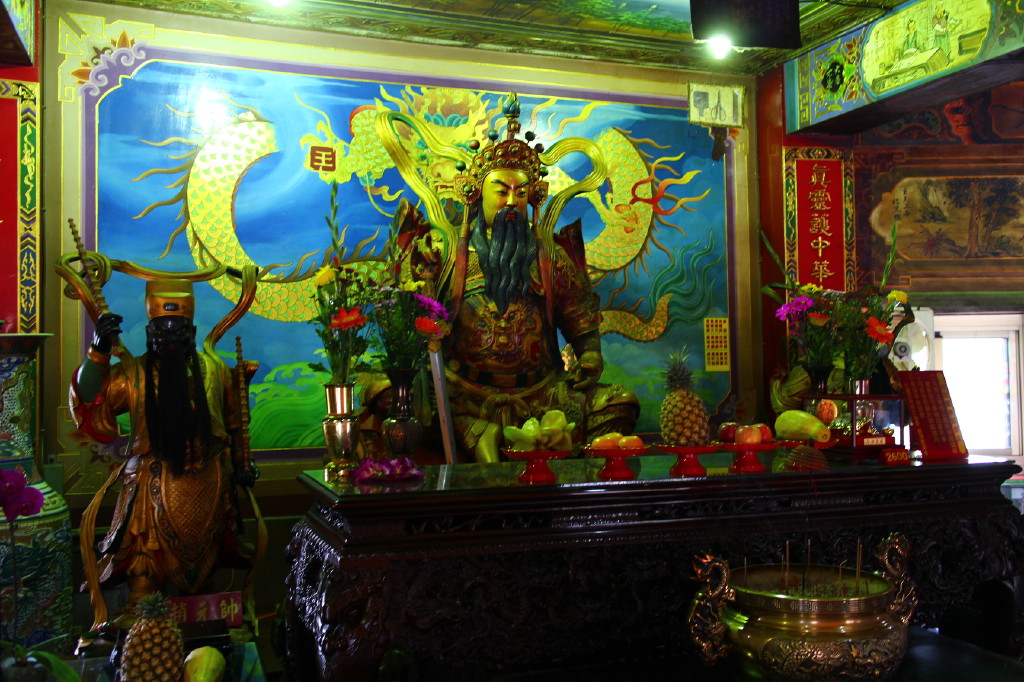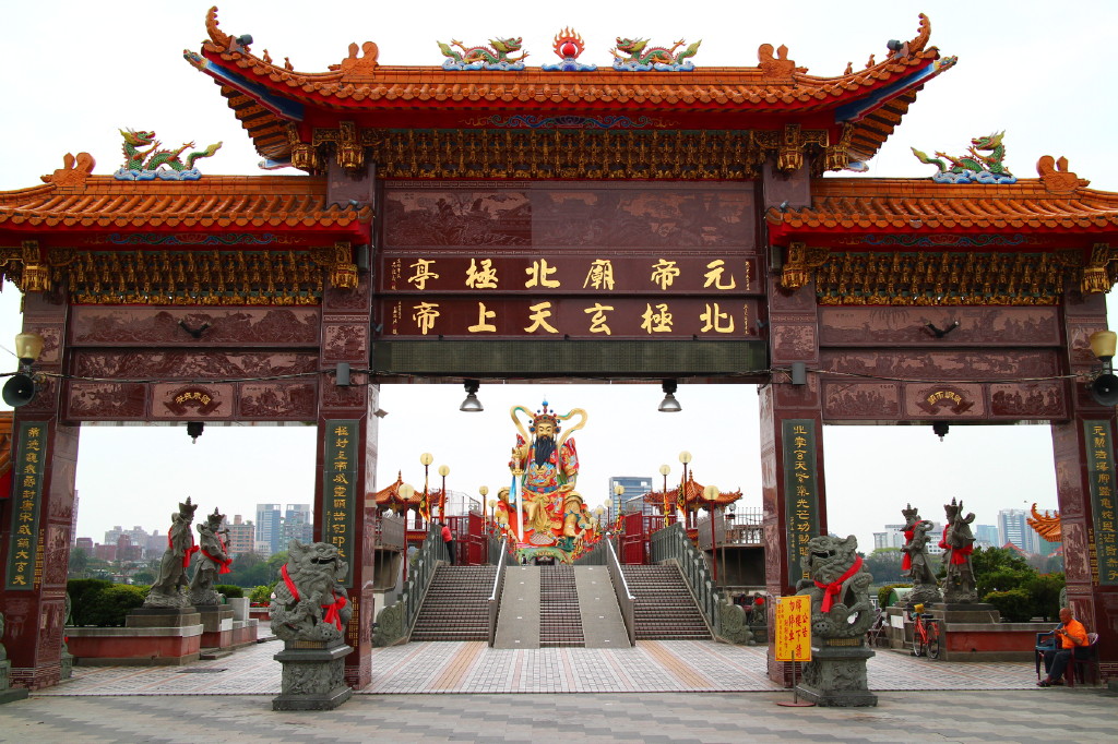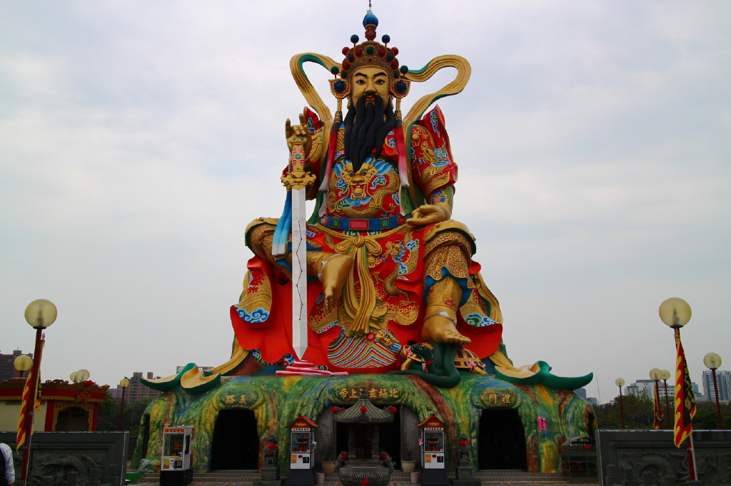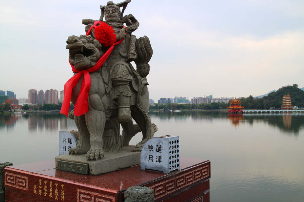 蓮池潭の中に突き出ているので遠くからよく見える大きな玄天上帝