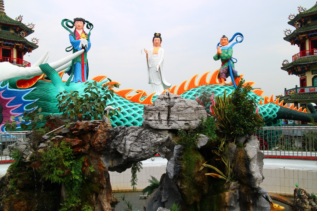 春秋閣は春閣と秋閣の二つの塔とその間に観音菩薩と龍虎塔より長い龍があり中へ入れるようになってます。塔の中は上がれるようですが、狭い急な階段だったのでやめました。