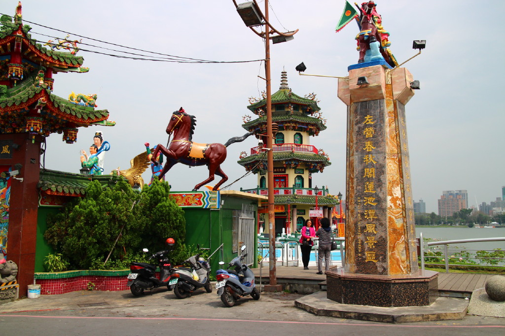 北極玄天上帝と龍虎塔の中間でどちらからも徒歩5分ほどです。すぐ前には啓明堂がありこのあたりはにぎやかさがあります。
