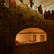 - 珍しい洞窟風の空間にキリストの像などが見られる。