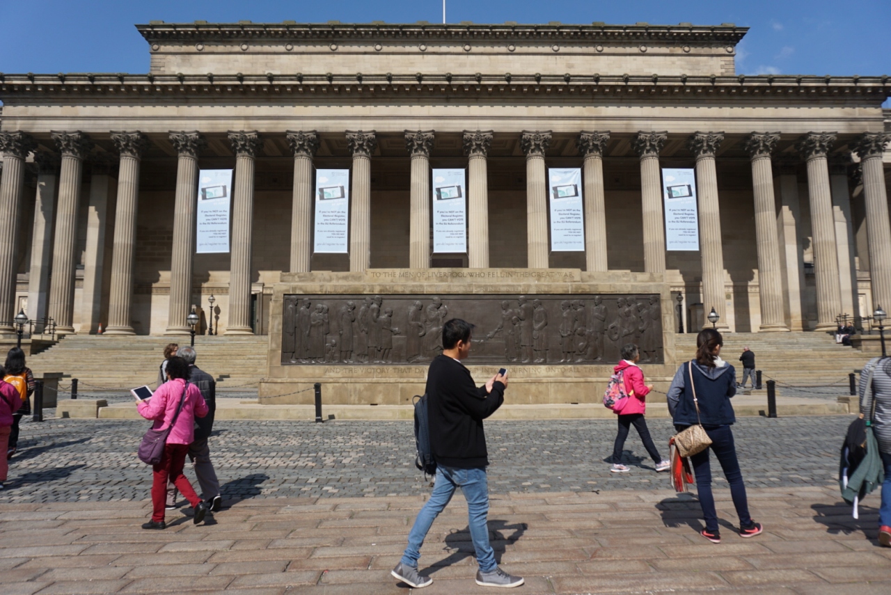 リバプール・ライムストリート駅前に建つギリシア神殿のような建築物。イギリスもなぜかギリシア風が好きな国民性を感じますが、幕末期にコンサート・ホールと裁判所として建築、現在もコンサート・ホールとして使用。ただ矢鱈目鱈とビートルズと関連するところが興味深い。