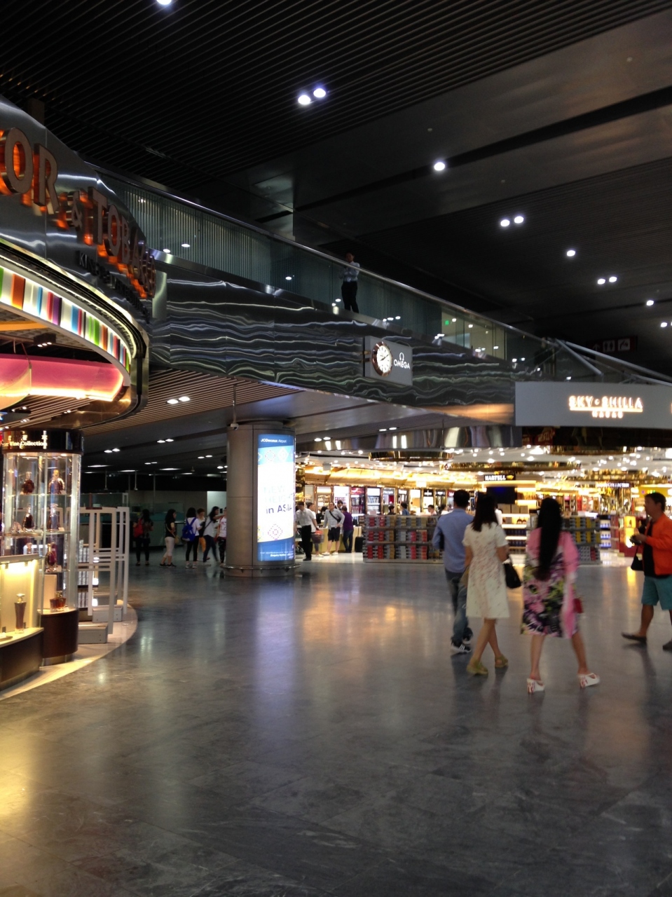 空港は規模が小さいので、迷うことはありません。ゲート付近の免税店など、マカオらしくキラキラしています。