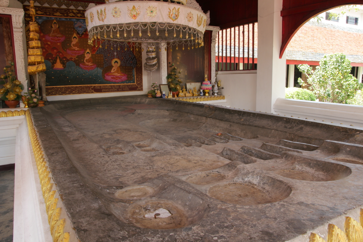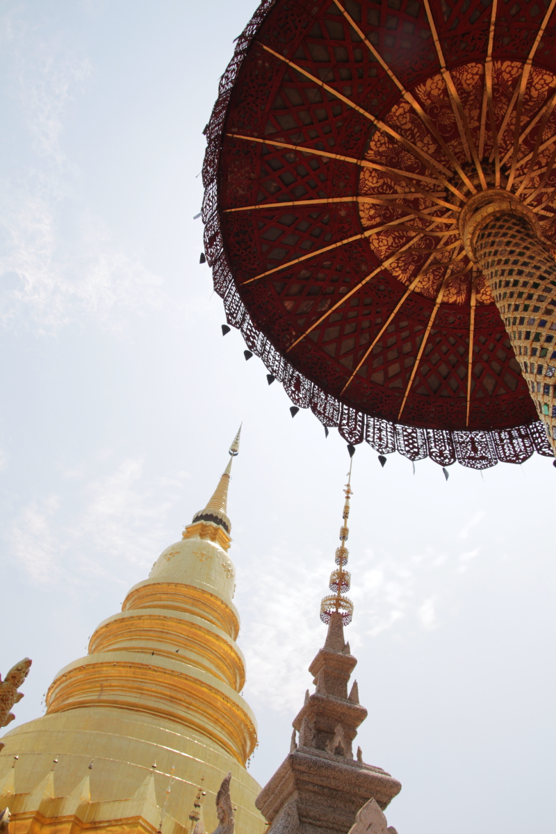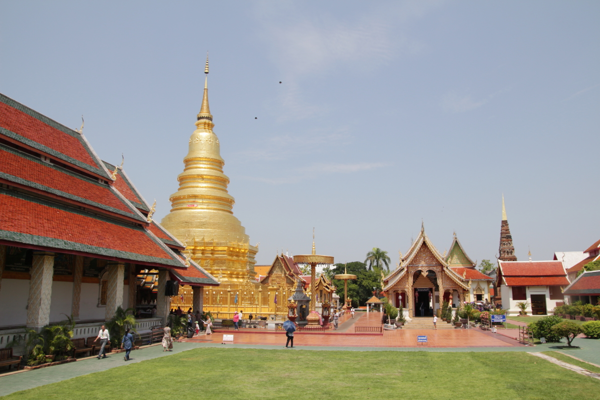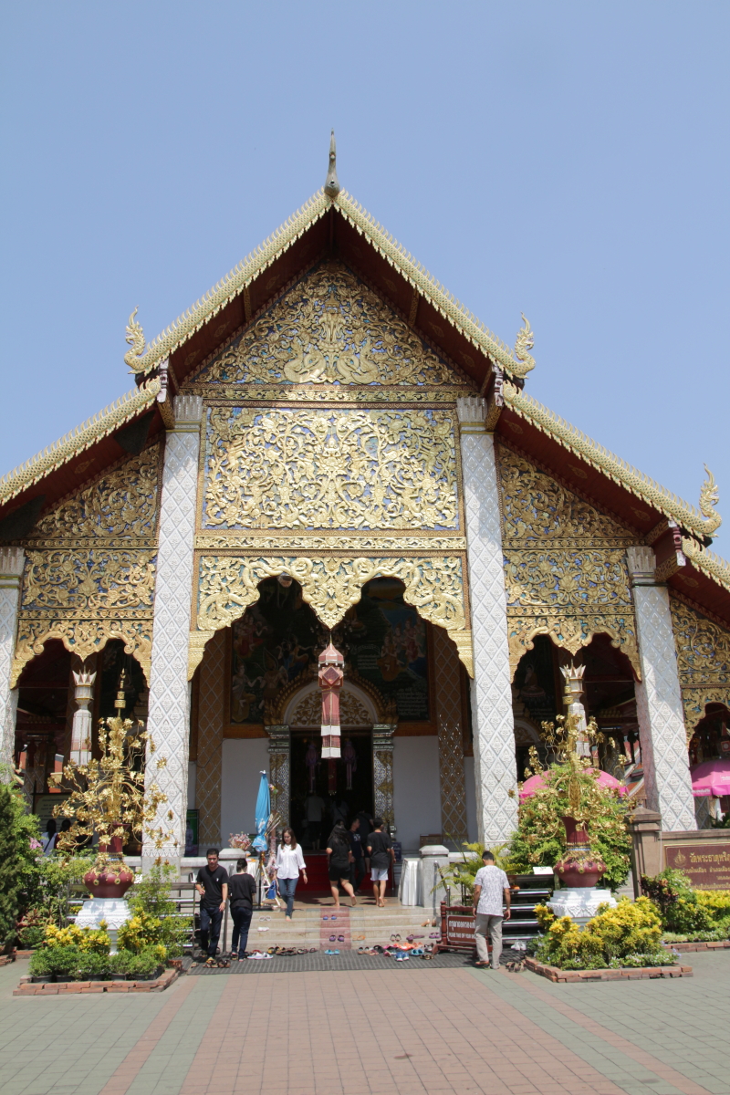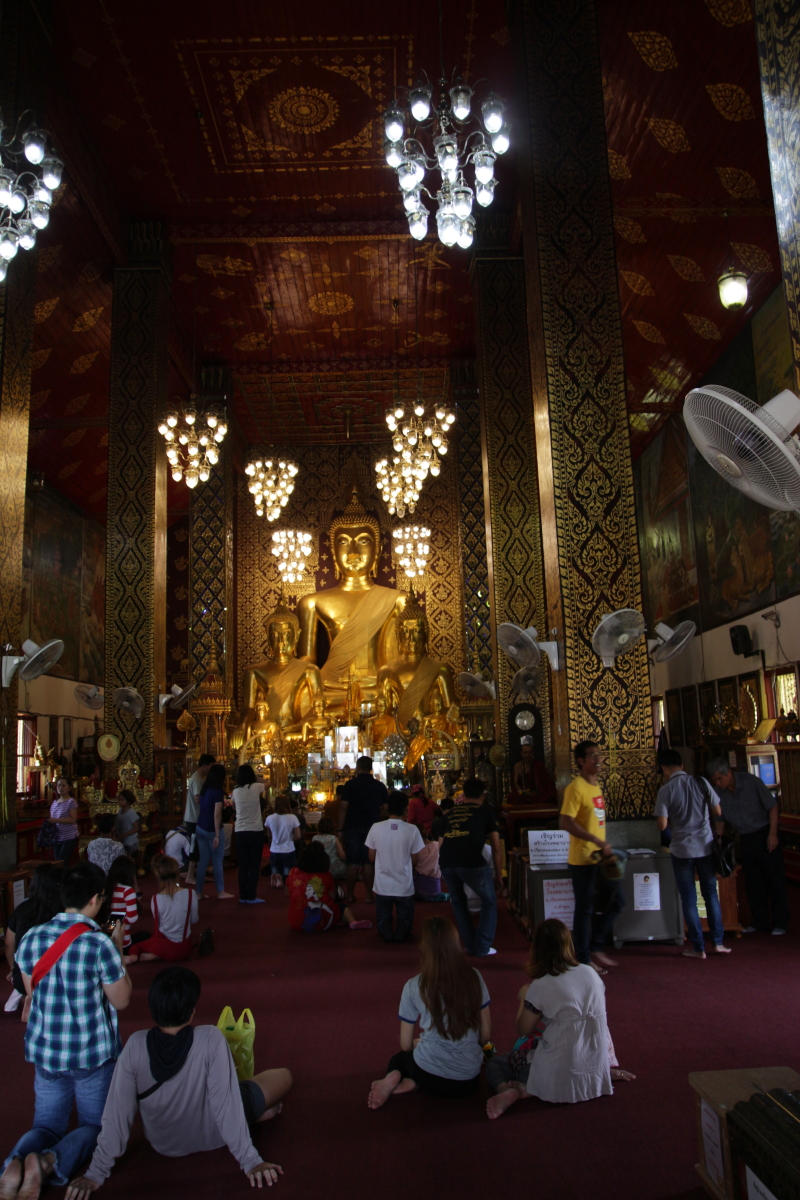 2つのチェディがあり、1つは大きな黄金のチェディでドイステープのように周りを回ってお祈りをします。暑い時期は、素足だとタイルが焼けていて熱いので、ソックスの持参をお奨めします。