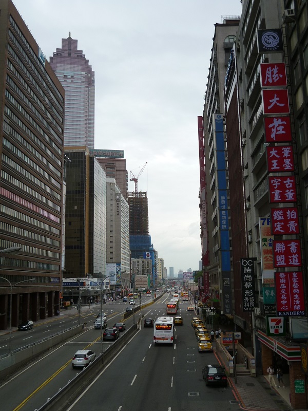 台北駅南側の大通りで、新光三越などが沿道に位置しています。中山路との交差点には行政院、監察院といった日本統治時代の見ごたえある建物も残っています。この交差点には歩道橋があり、上からは見応えのある景観を楽しめます。