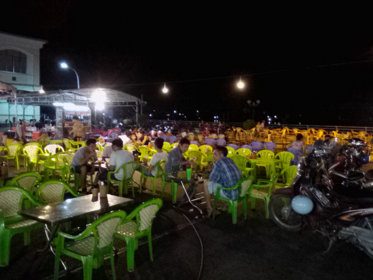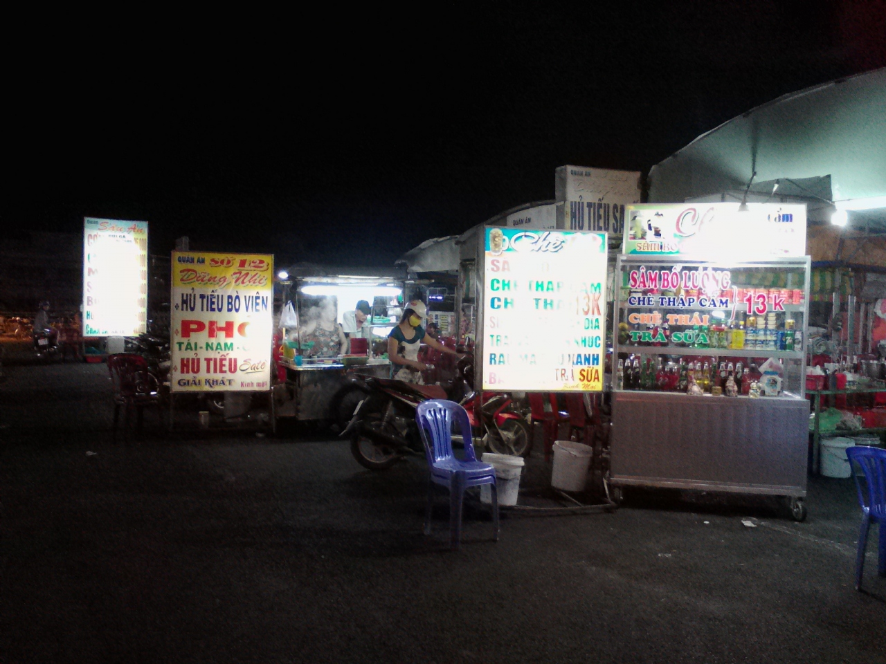 メコン川沿いにあるナイトマーケット。昼間は観光バスの駐車場になっていますが17:00頃から始まります。買い物するところではなく食事の屋台のみです。ミトーはメコンクルーズの観光地ですがホーチミンからの日帰り客が多いのか夜はあまり賑やかとは言えません。ナイトマーケットは人もまばらでちょっと寂しかったです。川沿いなので夜風が気持ち良さそうではありますが…。フォーやコムは25000ドン、鍋物10万ドン、チェー13000ドンなどがあります。