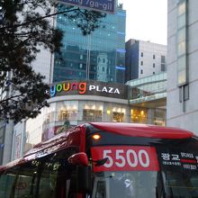 明洞地区にある商業施設「ロッテヤングプラザ」は、ガラス張りの外観、曲線を活かした造り、カラフルな電光掲示と、日本でいうと原宿や渋谷にある若者向けの商業施設とイメージが重なりました。