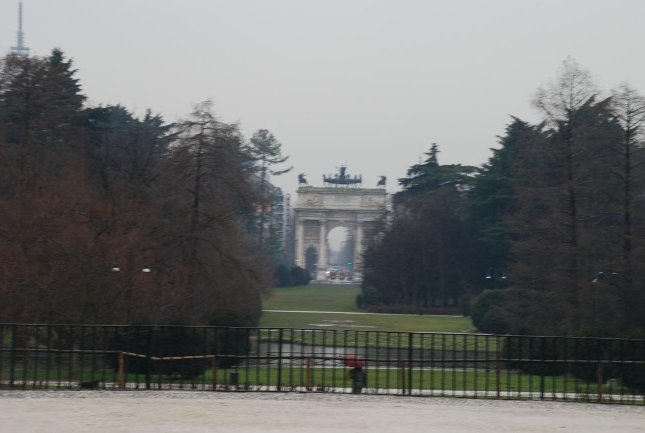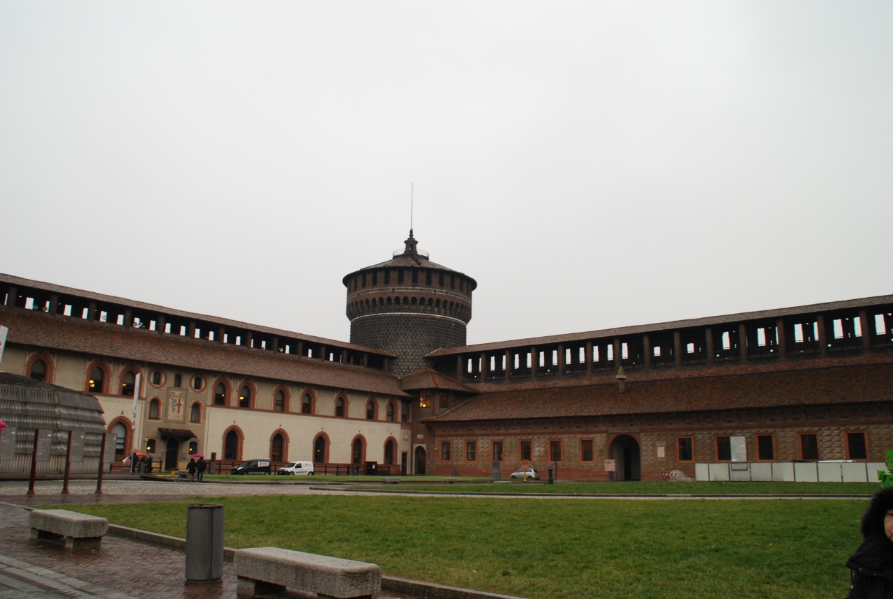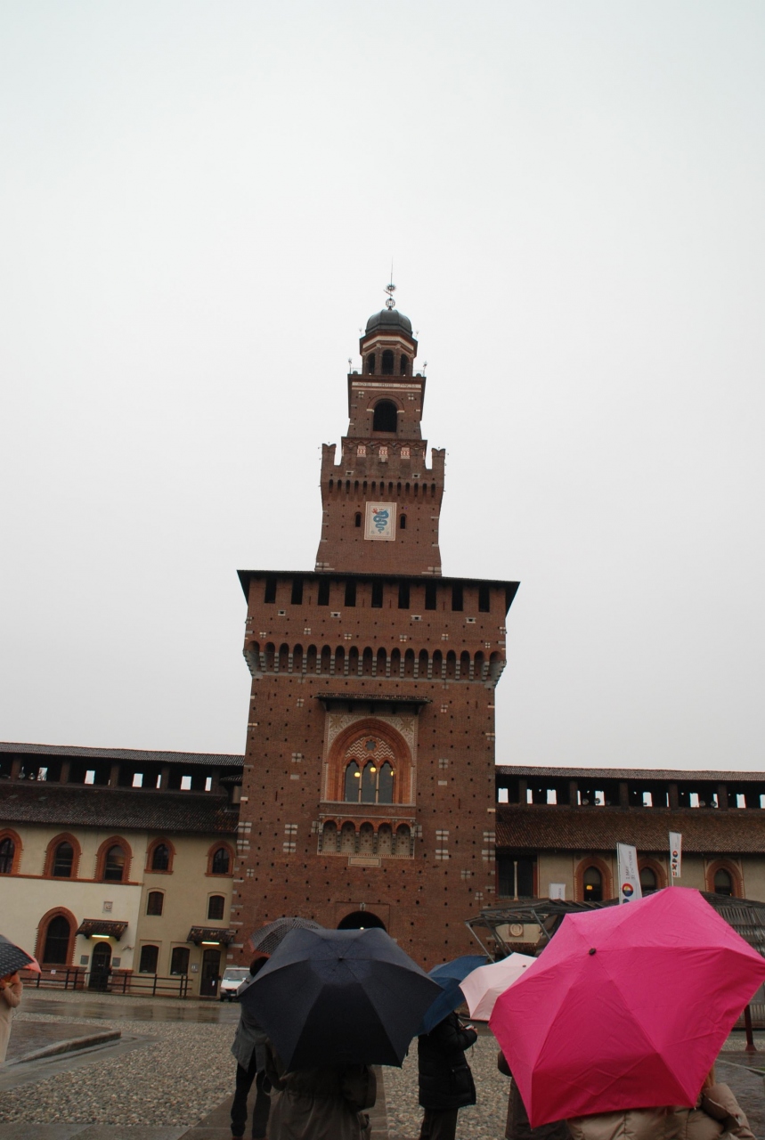あいにくの小雨が降る天気で傘をさしながらの撮影で、思う存分撮影できなかったのが残念でした。お城の内部は意外と広く、小雨に煙るお城も趣がありました。中の広場から遠くに見える凱旋門がよかったです。ミラノに凱旋門があるとは思ってもみなかったです。