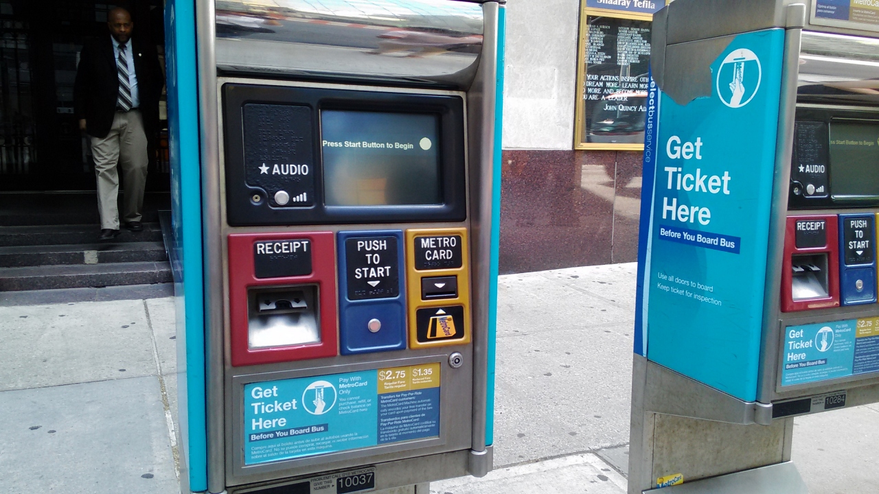 バス停に券売機があったら、メトロカードを挿してレシートを取り、運転手さんに提示します(ろくに見ちゃいないけどね)。この場合、バス内でメトロカードは挿しません。バス停や待っている人の様子を確認したほうがいいです。(基本的にはみんなの真似をすればOK)