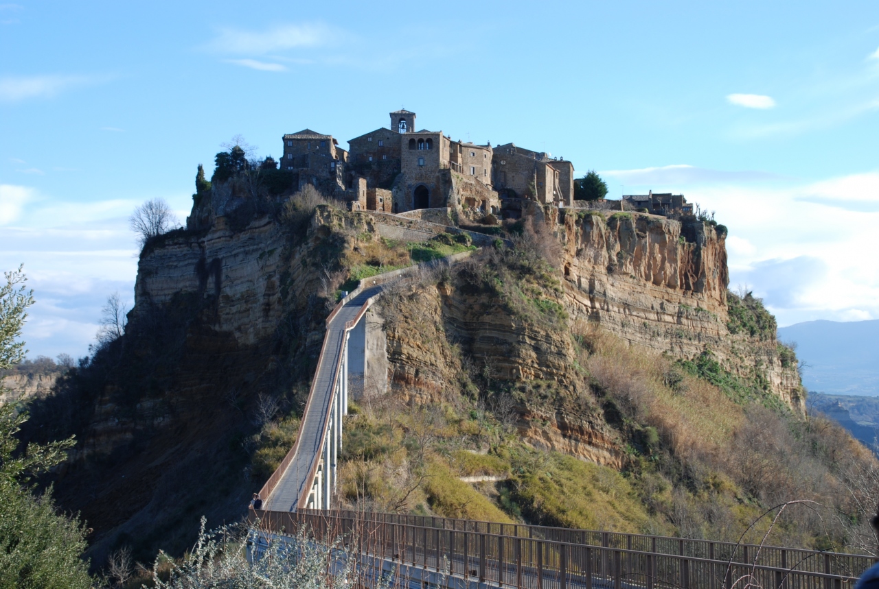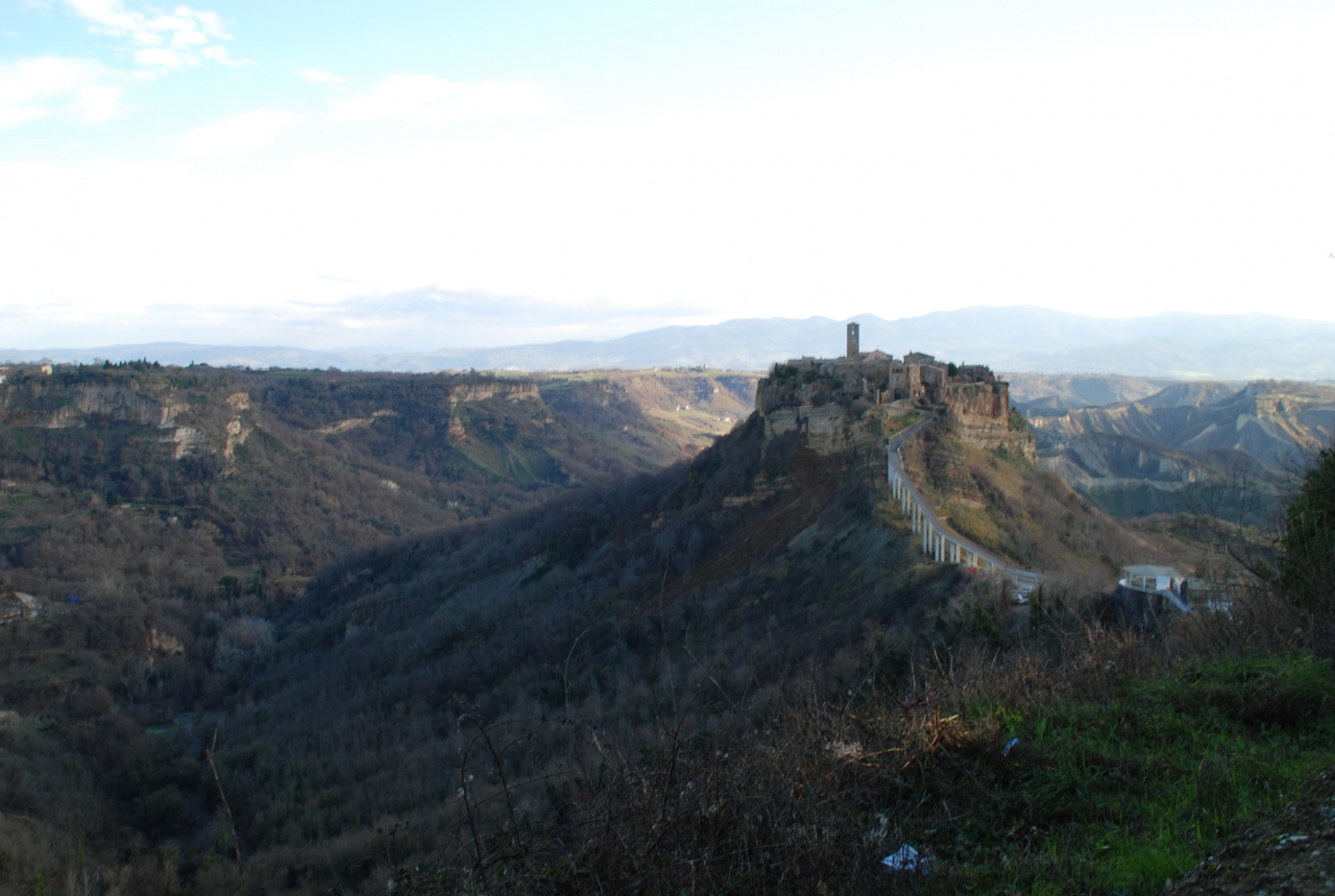 - チヴィタへ向かう橋の上からの景観が素晴らしい