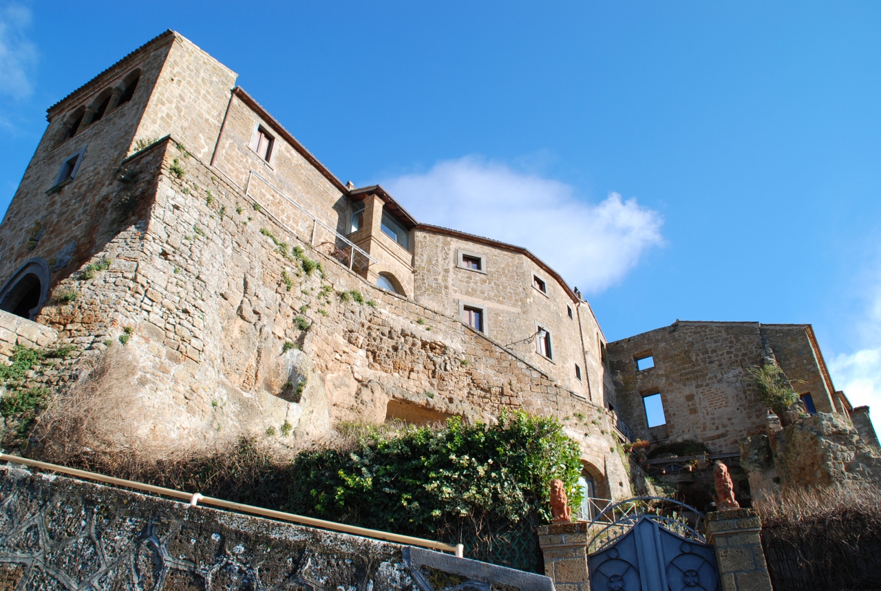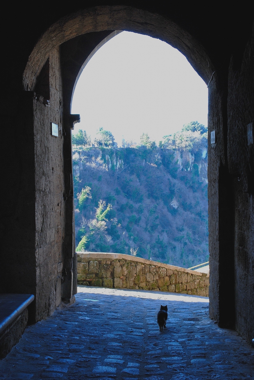 紀元前にエトルリア人によって築かれた断崖絶壁上の村です。長さ500mほどの橋を渡ってチヴィタに入ります。この橋は普通の車は通れなくて、一番幅の狭い所でオートバイなら歩行者とすれ違いで通れるほどです。この橋からの眺望が眺望が素晴らしいです。村の中に入ると、猫がいっぱいいます。猫好きな人ならたまらないでしょう。村の真ん中に教会が建っています。小さい教会ですが、当日は中に入ることもできました。観光客は少ないため、村の中はひっそりとしていました。でも、景観が素晴らしいのでお勧めの観光地だと思います。