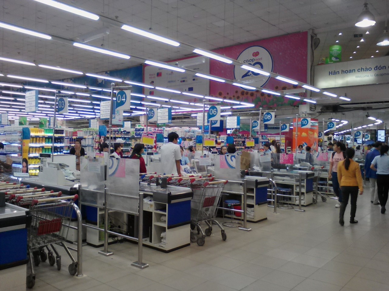 普通のスーパー。けどこの普通がうれしいです。品揃えも豊富だし、値段表示もしてあるし。2階には衣類売り場とミニミニフードコート、ゲーセンがあります。デタム通りに宿泊していたので距離も近く重宝しました。パン売り場で安い食パンを発見しました。1袋13300ドン。なぜだかわかりませんが他の物よりズバ抜けて安いです。しかもレーズン入り。夕方行くと売り切れているので早めに行った方がいいです。