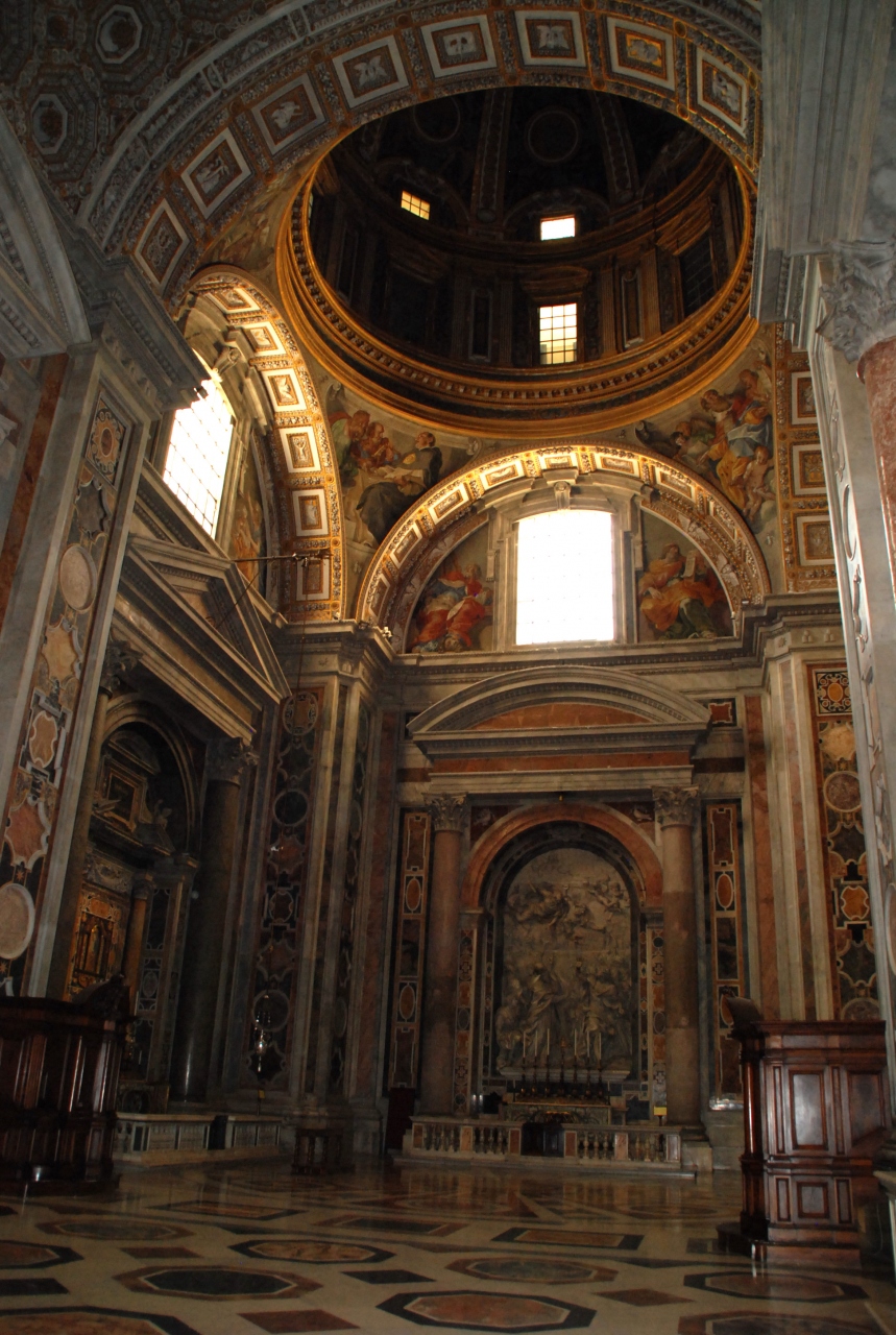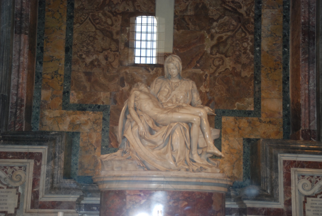 大聖堂に入る前に入り口ゲートで荷物とボディチェックがあります。私が行ったときは冬場でしたので、男女とも服装は問題なかったです。夏場は、肩や膝が露出している服装では入場を断れることがありますので注意しましょう。やはり、神聖な場所だからでしょう。チェックを終えて中に入ると、右手奥にミケランジェロ作のピエタ像が見えます。亡骸になったイエス・キリストを胸に抱く聖母マリア像が悲しそうな顔をしておられるのを見ると、胸がきゅんとなってしまいます。他には、上部の壁に描かれたジョット作の小舟も有名です。この二つの作品は是非押さえておきたいところでしょう。