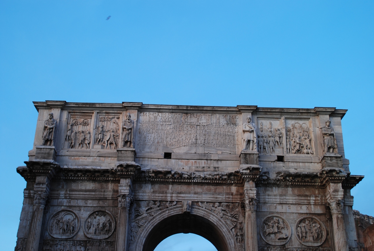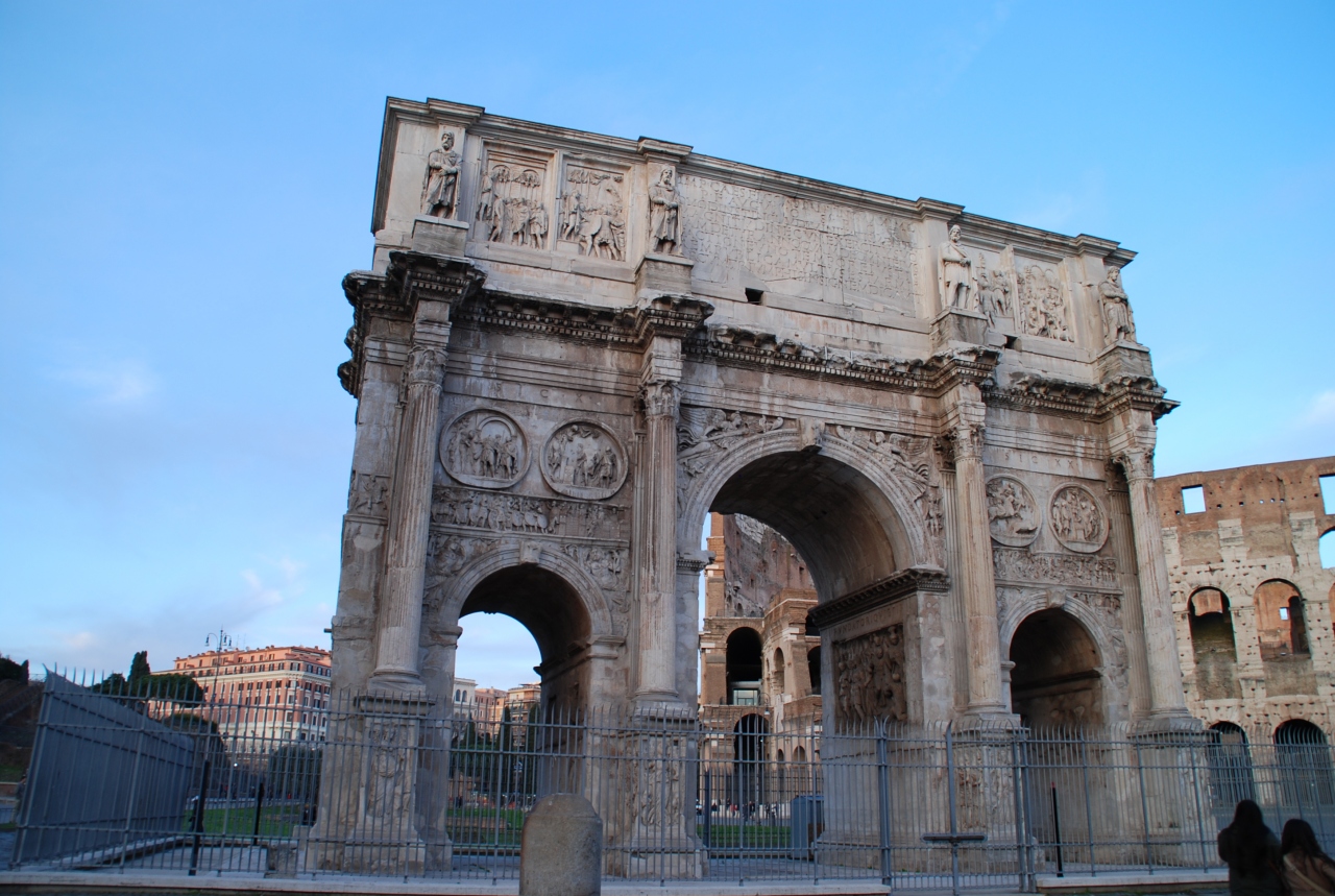 凱旋門と言えば、フランスの凱旋門が有名ですが、ローマにあるコンスタンティヌスの凱旋門は古代ローマ時代に作られたもので、古いが故に威厳があります。こんなに古い凱旋門が破壊を免れて現在に至るまで残っているのは稀だと言われています。