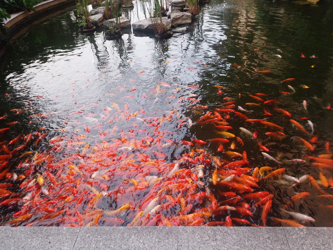 1階の外にはたくさんの鯉と、鯉の餌(有料)があります。