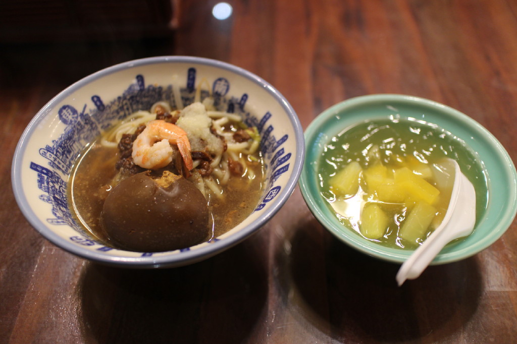 担仔麺の量は1/2ほどでもう少しほしいという位が一番おいしいのかもしれない。黒卵のトッピングが絶妙のマッチングで、他にゼリーも食べて95元だった。