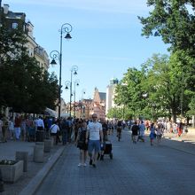王宮広場から南へ延びるメインストリートです。クラクフ方面に向かっているためにこの名が付けられたそうです。沿道には国民的詩人アダム・ミツキエヴィッチの像、ワルシャワ大学や聖十字架教会など歴史的建物があります。途中からは新世界通りと名前を変え、しゃれたカフェやショップが並ぶ美しい通りとなります。人通りが非常に多いですが、時間帯によっては写真のようにまた違った雰囲気を楽しめます。