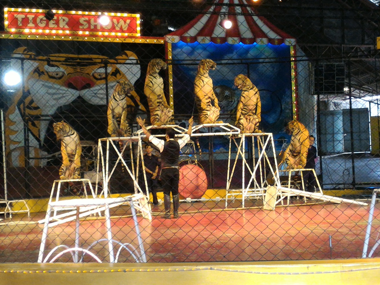 トゥクトゥクでシラチャのロビンソンから20分、150バーツで行けます。子供のトラや大人のトラに触りながら写真を撮れます。おっかなびっくりですが。。。他にも小さいワニや象にも触れます。ショーは象、ワニ、トラがあり、トラが一番面白く、ワニはショーが始まっているのか準備なのか分からないまま終わります。トラに触れる機会はなかなか無いので面白いですよ!