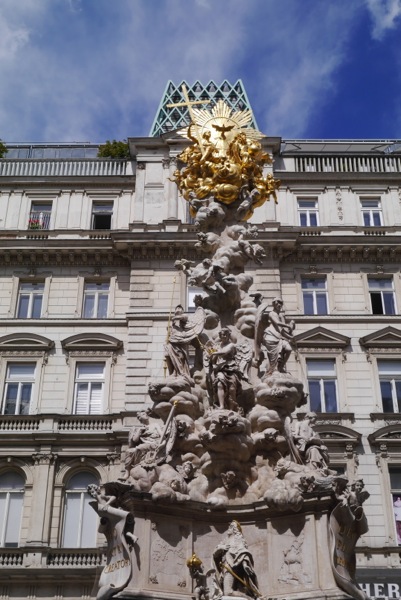 かなりボリューミーな塔です。通りの真ん中にあり、すこし遠くからでも見えるので、見つけやすいです。私の訪れたときは塔の下部が工事中?で、布がかけられていてすべてをキレイに見ることができなかったのが少し残念でしたが、青空の下に映える像はとても目立っていて、思わず見とれてしまいました。