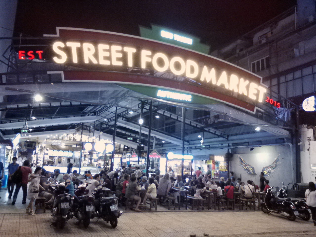 場所はベンタイン市場の北側の出入口から延びるThu Khoa Huan通りを50mほど行った右側です。木曜の夜8:00頃覗いてみたらそこそこ混んでいました。多くは観光客だと思います。西洋人は2割程度でしょうか。