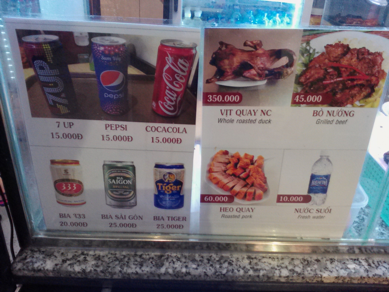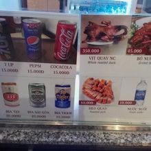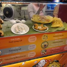にしても食べ物の値段が高い(ベトナムの普通の物価と比べてですが…)。そしてそれが値段に見合ってない。このような所に食事に来る人は値段は気にしない、いくらだろうが食べるものは食べると思われているのだと思います。観光客はここにくれば店を探す手間が省けるし仲間が多く安心できますから。いろいろな店のメニューの写真を撮ったので参考にして下さい。